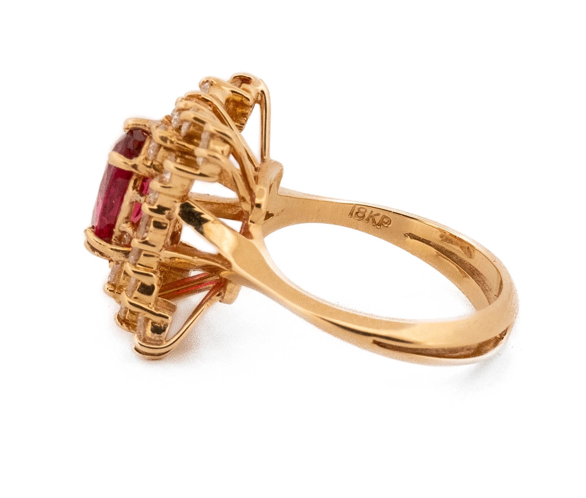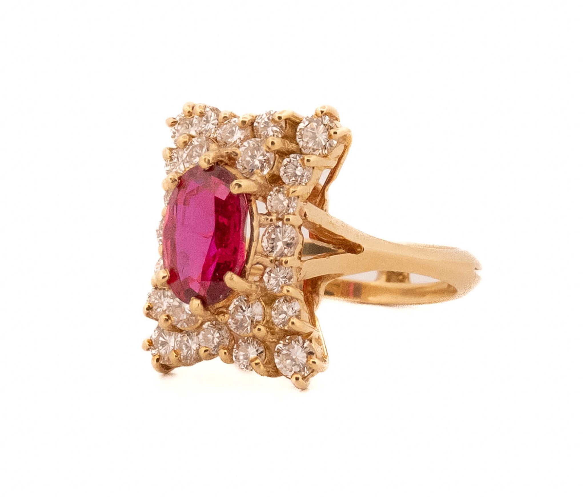 The combination of the ruby and diamonds creates a striking contrast, with the deep red of the ruby highlighted by the sparkling, white diamonds. making the central ruby the focal point. This ring is both classic and contemporary, making it versatile for a variety of occasions, from engagements to anniversaries or special celebrations. It’s an elegant choice for those who appreciate the beauty of colored gemstones combined with the classic brilliance of diamonds. Overall, this ring is a luxurious and striking piece, ideal for someone who enjoys fine jewelry with a touch of color and sparkle.