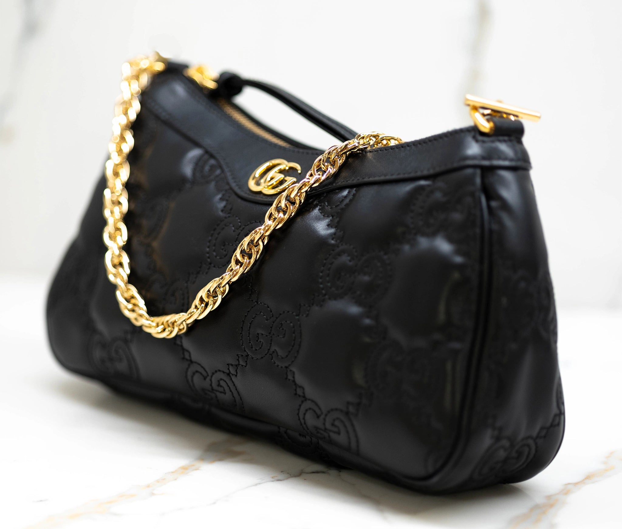 Gucci Black GG Leather Matelasse Small Shoulder Bag