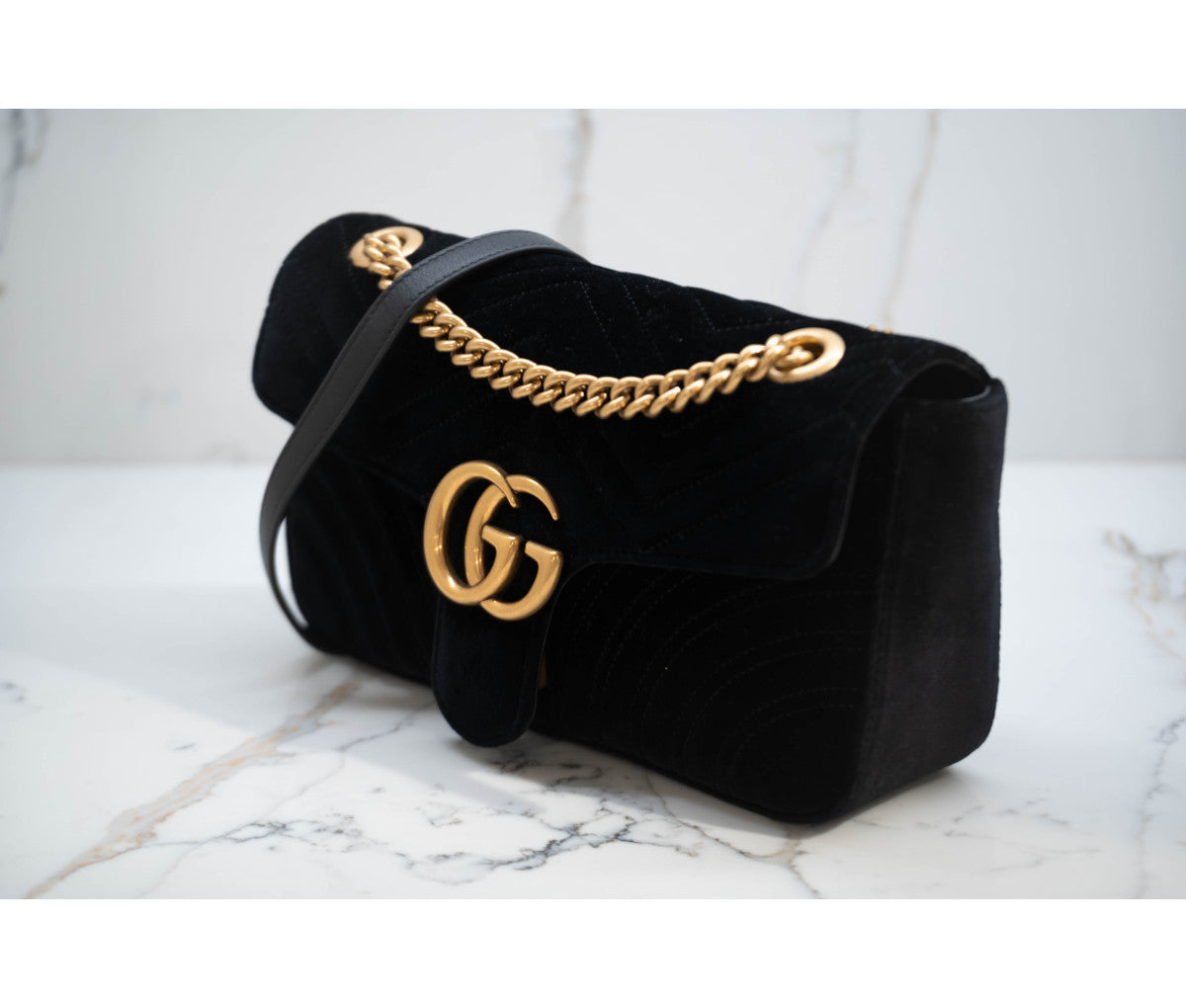 Gucci Black Velvet Small Marmont Shoulder Bag