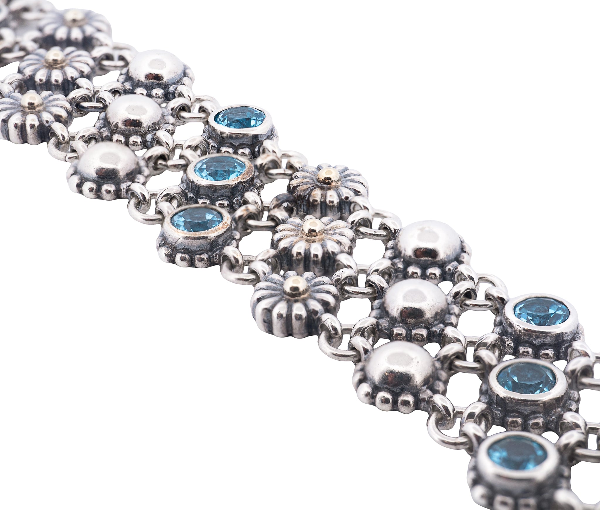 Caviar 3 Row Blue Topaz Station Bracelet
