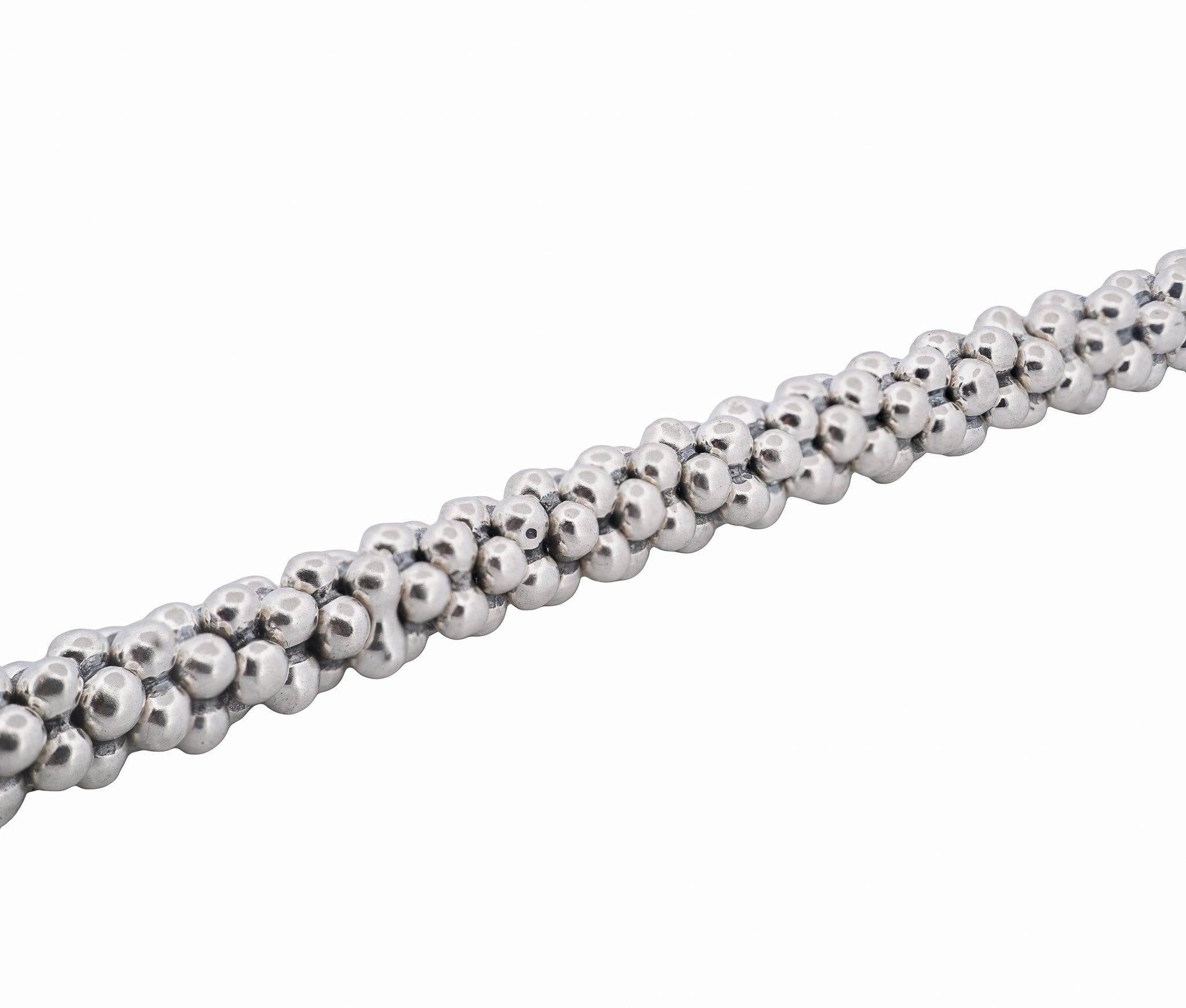 The Lagos Caviar Signature Beaded Necklace is crafted in sterling silver, featuring the brand’s iconic 7mm Caviar beading for a timeless and textured look. Measuring 16.5 inches in length and weighing 66.4 dwt, this necklace offers a bold yet elegant presence. Perfect for everyday wear or layering, it reflects Lagos’ signature craftsmanship and classic sophistication.