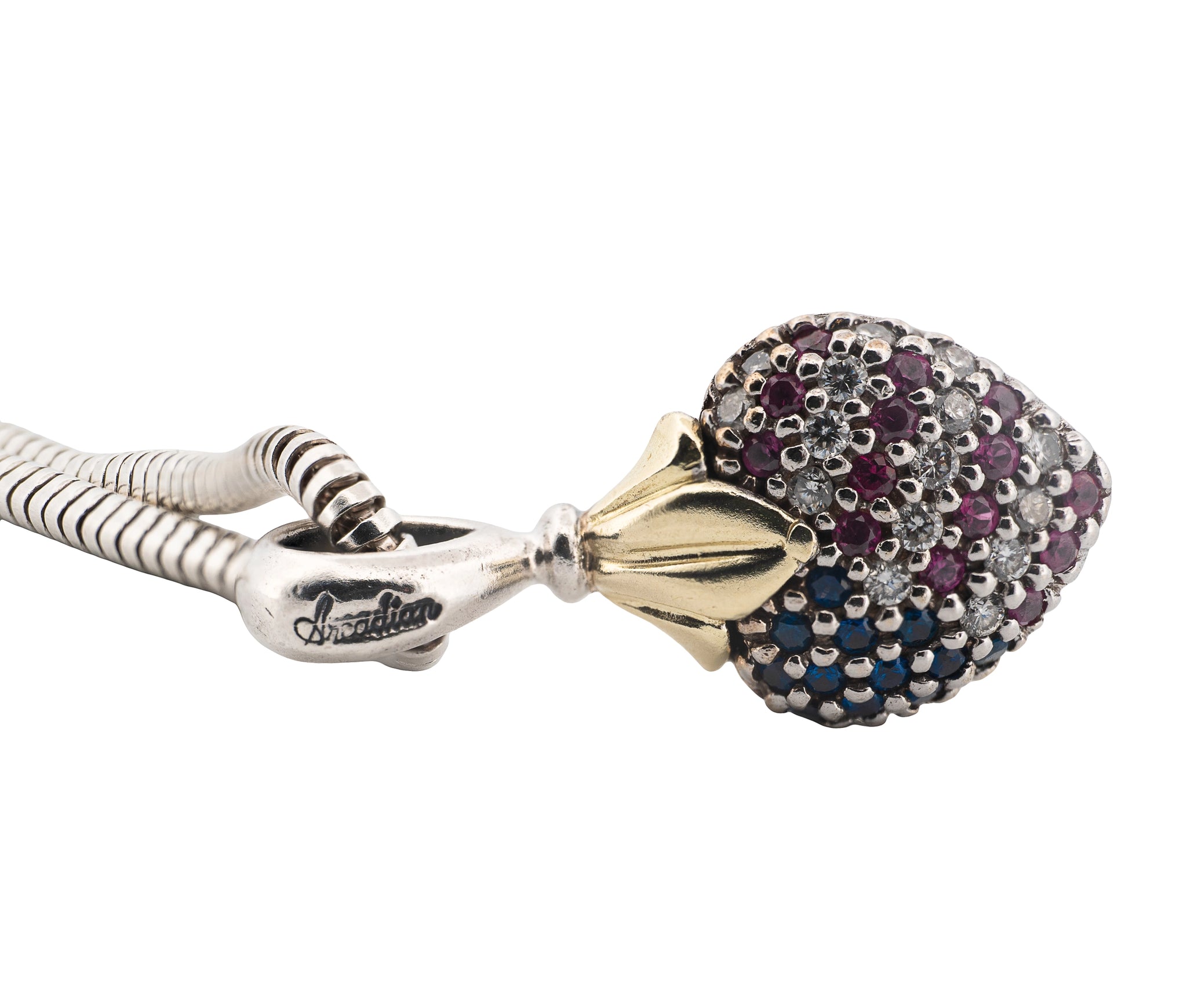 Lagos Caviar Sterling & 18K YG Arcadian Gemmed American Flag Heart Necklace
