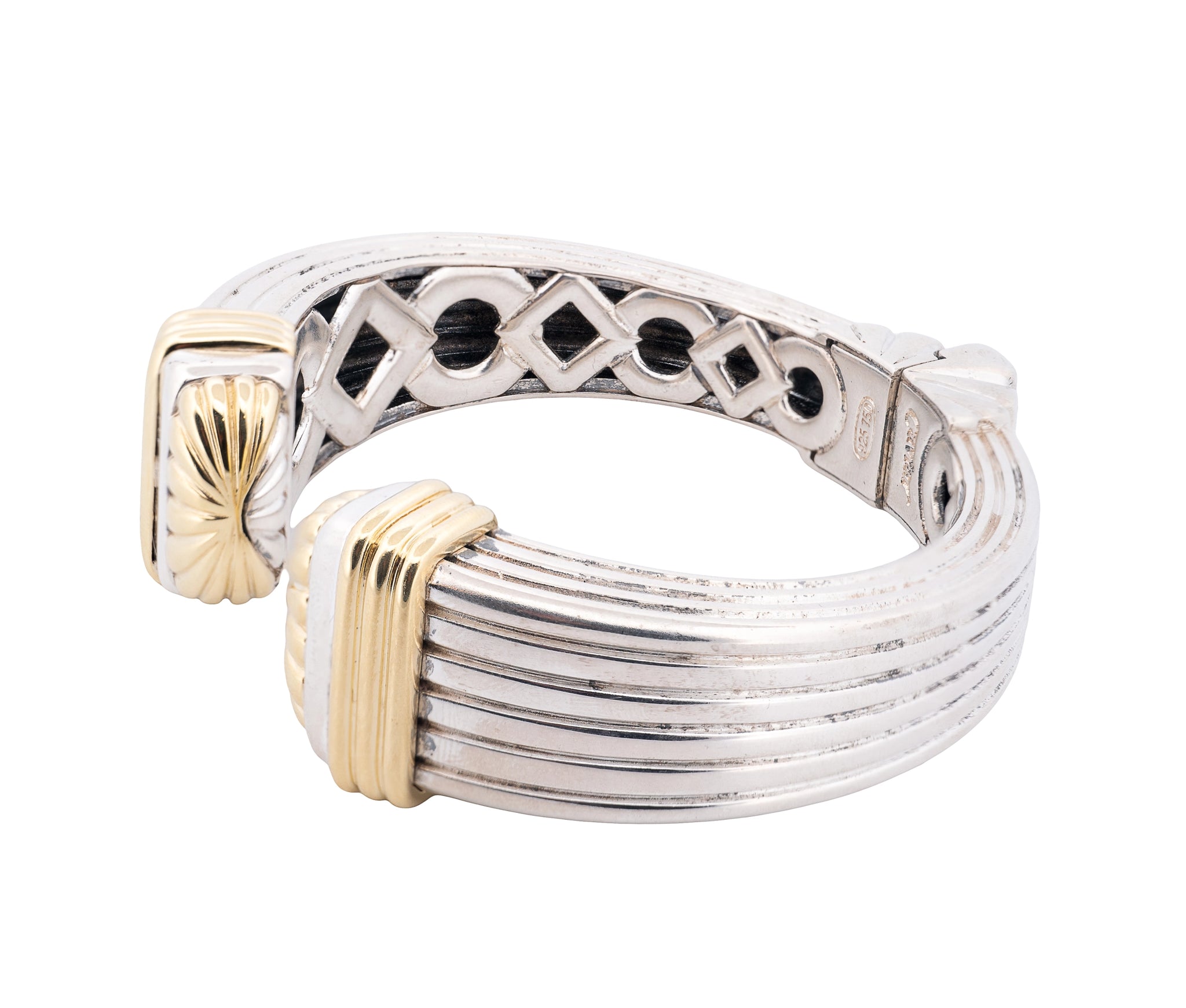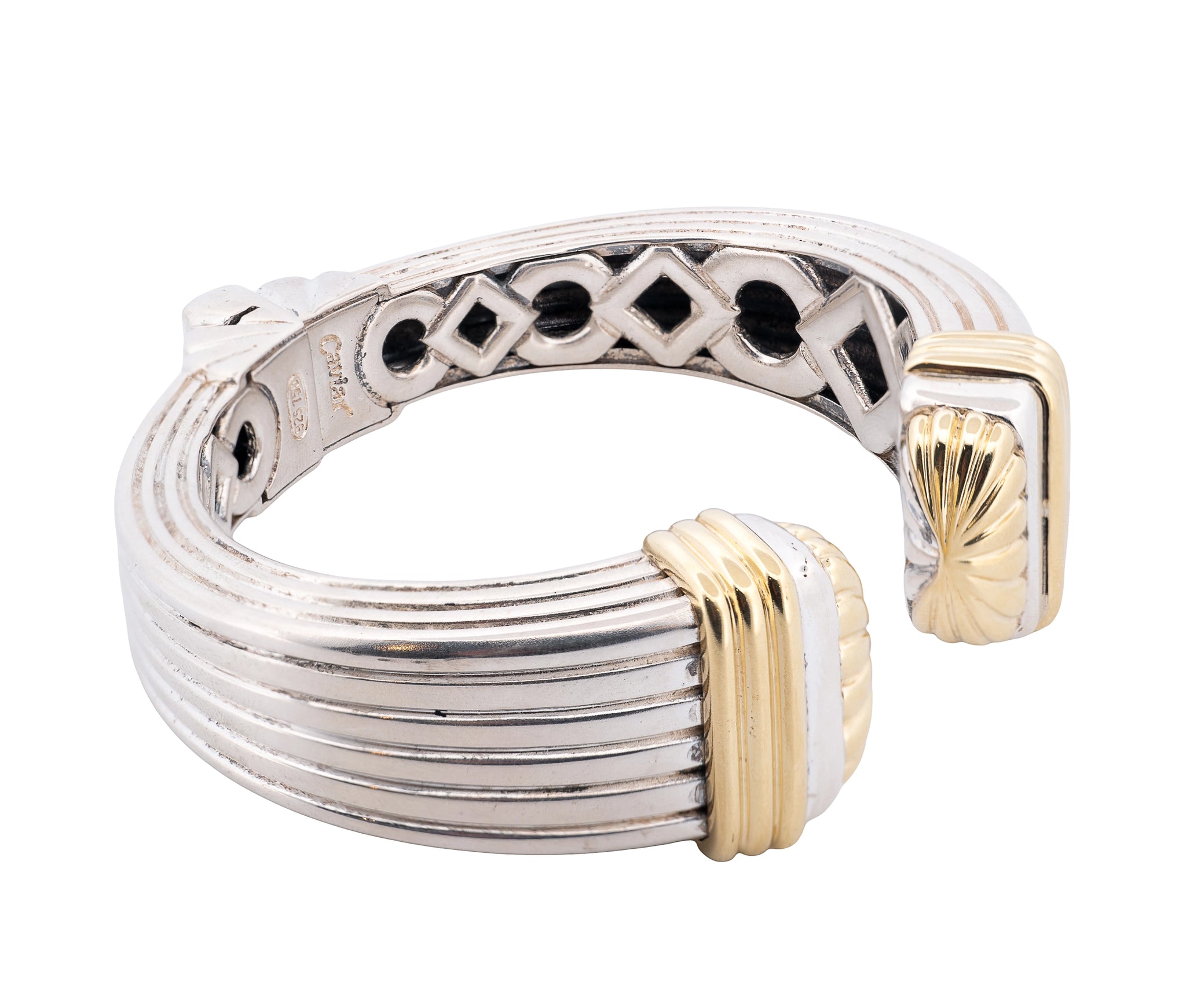 Lagos Caviar Sterling Silver ad 18K Yellow Gold Hinged Bracelet
