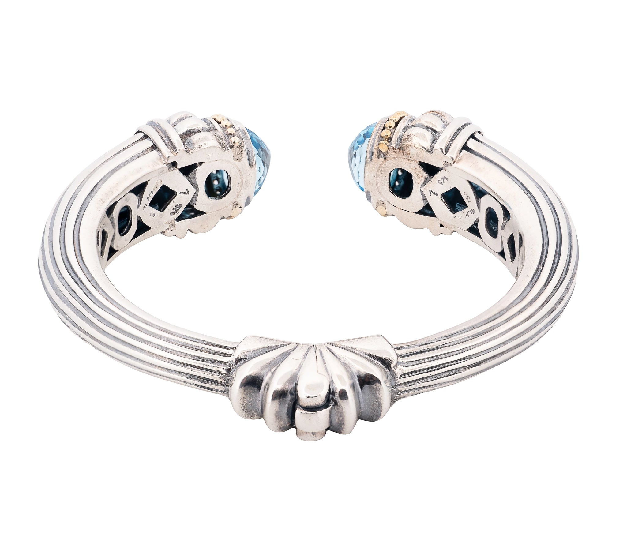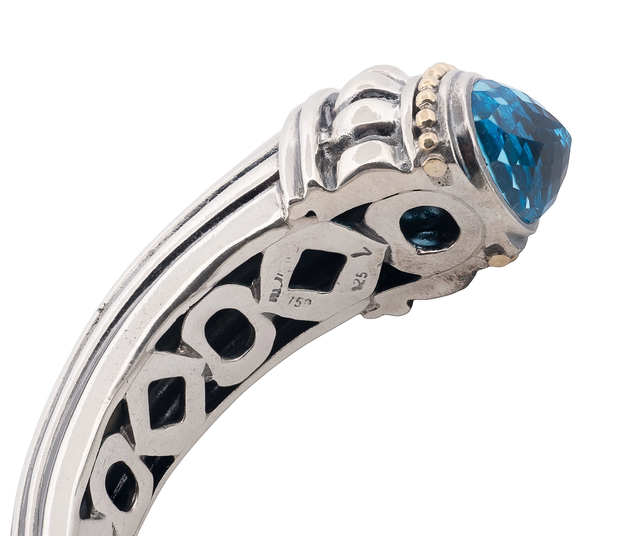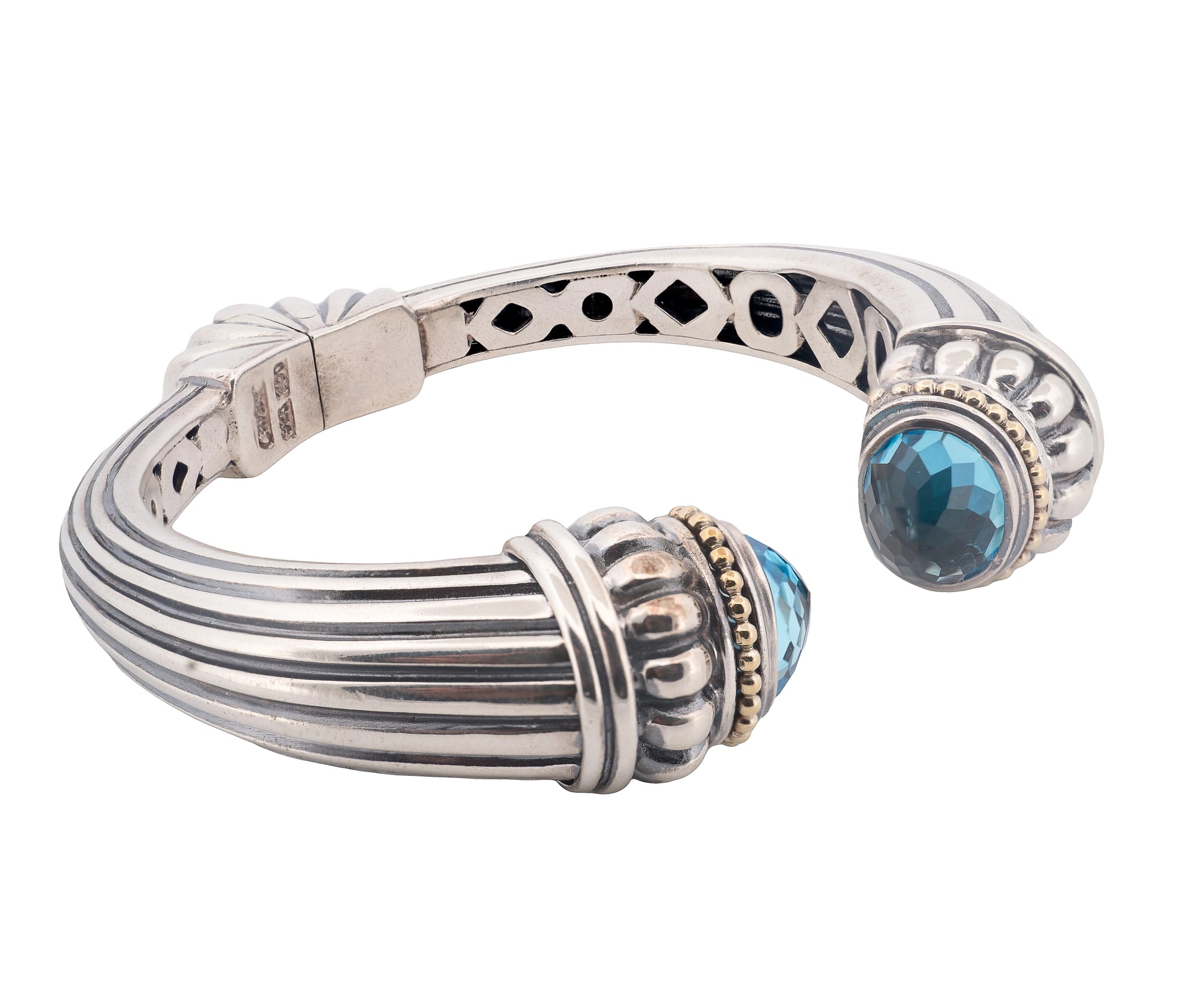Lagos Caviar Sterling Silver and 18K Yellow Gold Blue Topaz Cuff