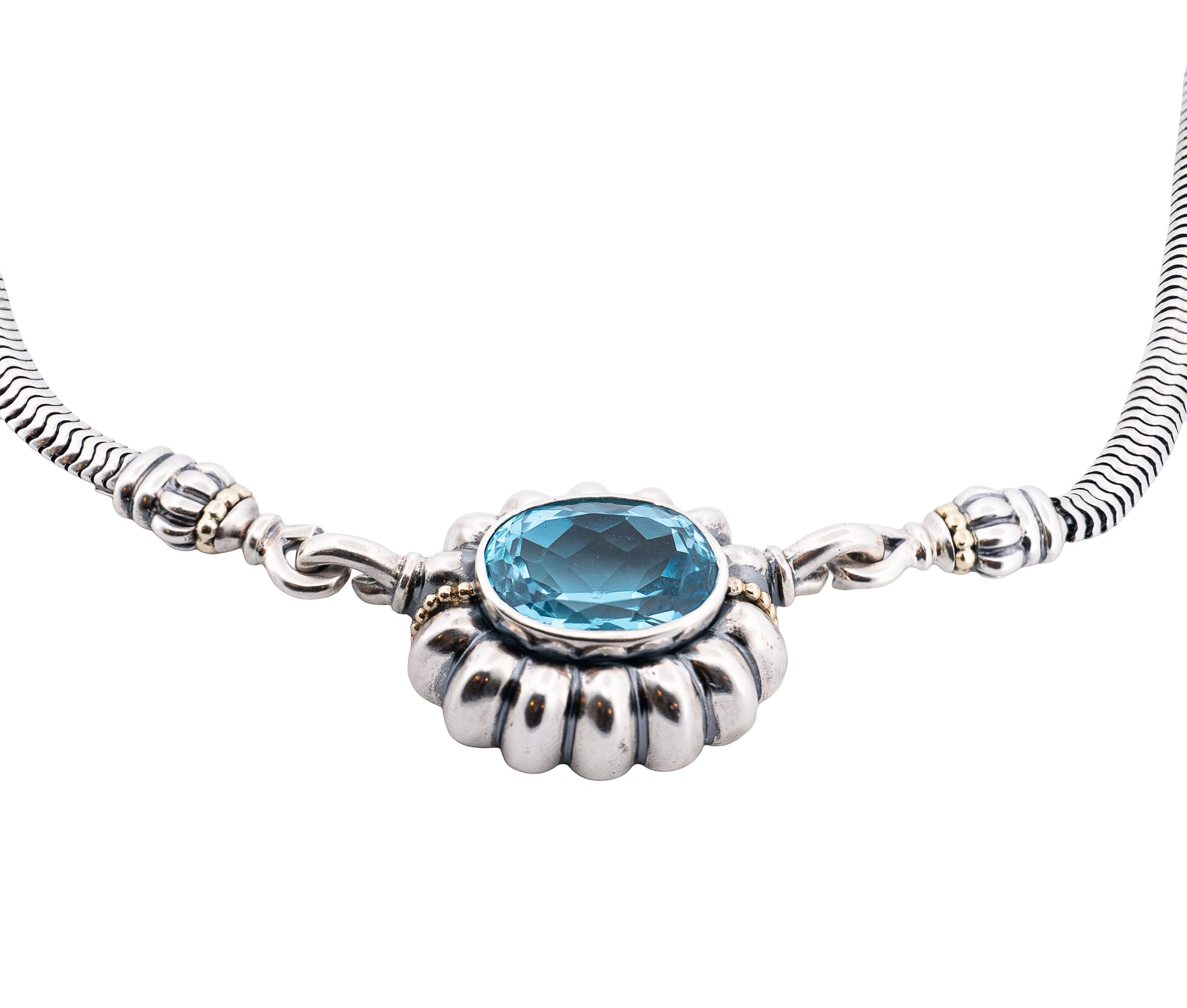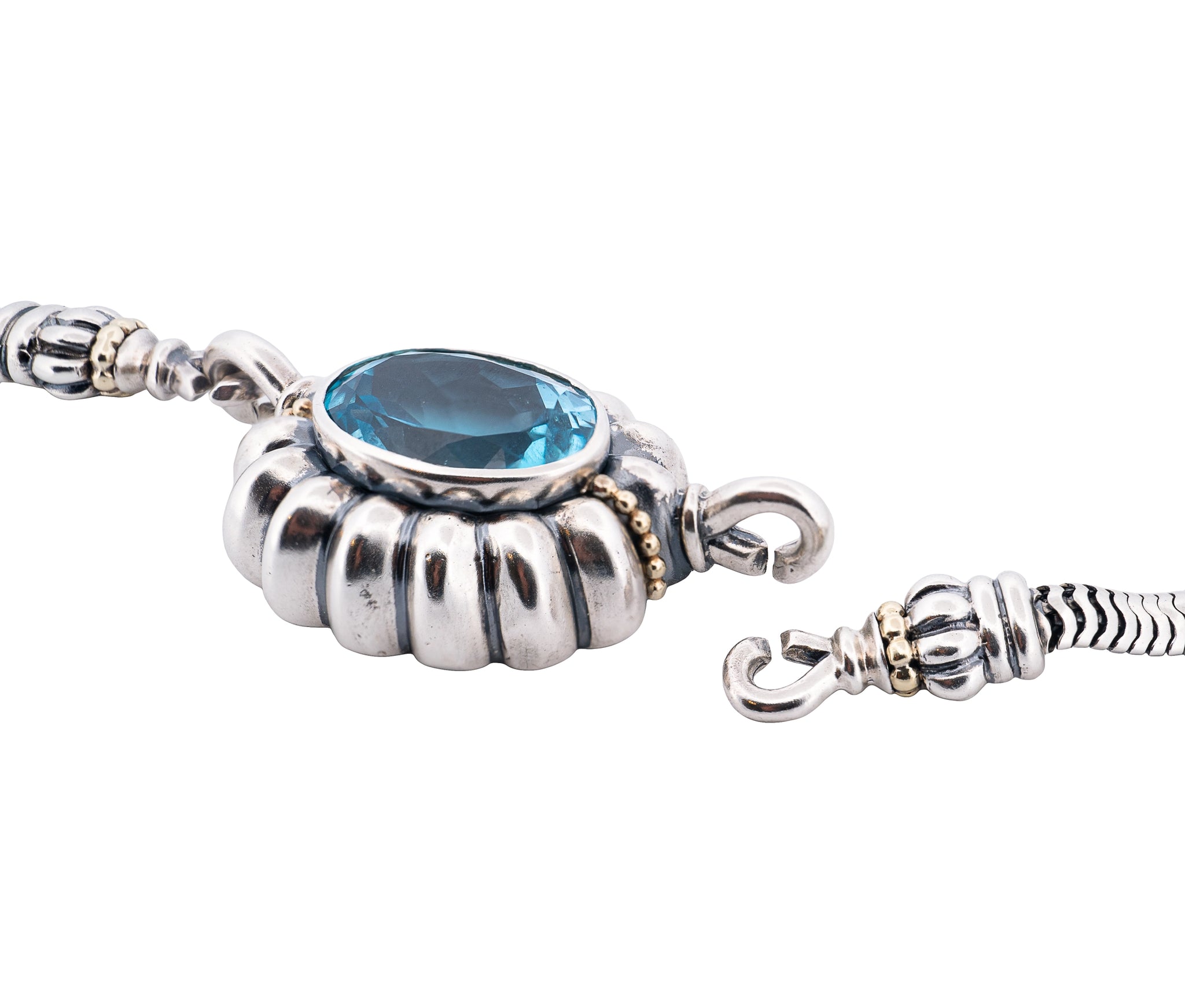 Lagos Caviar Sterling Silver and 18K Yellow Gold Blue Topaz Necklace