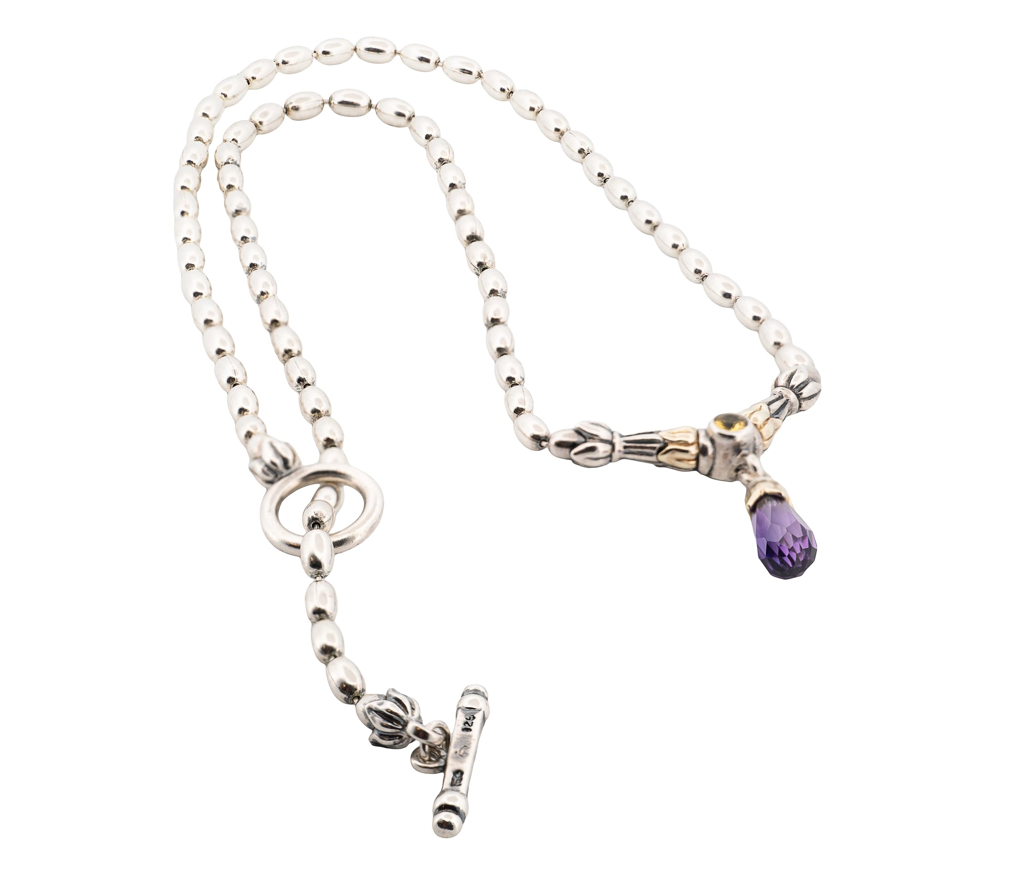 Lagos Caviar Sterling Silver and 18K Yellow Gold Citrine and Amethyst Necklace