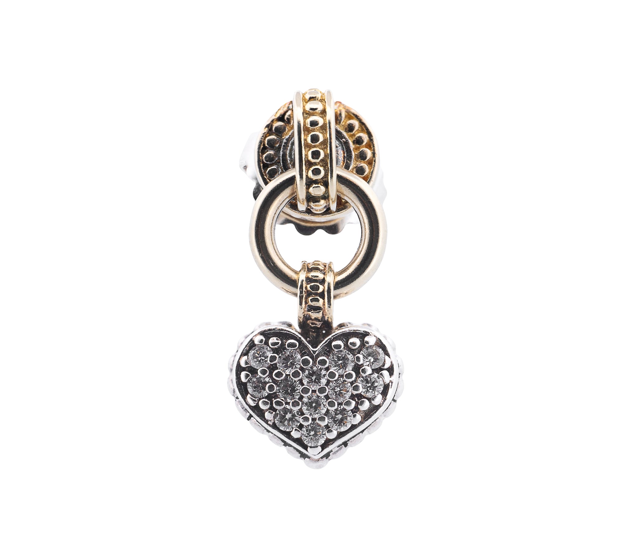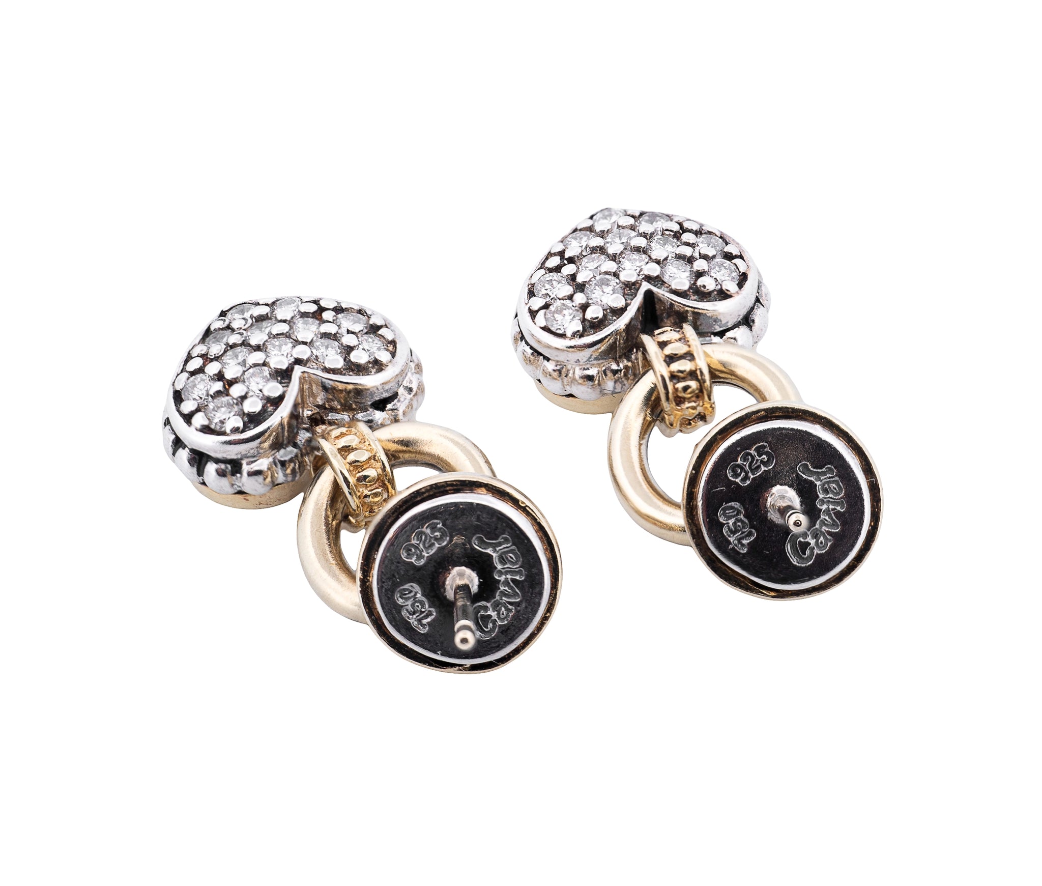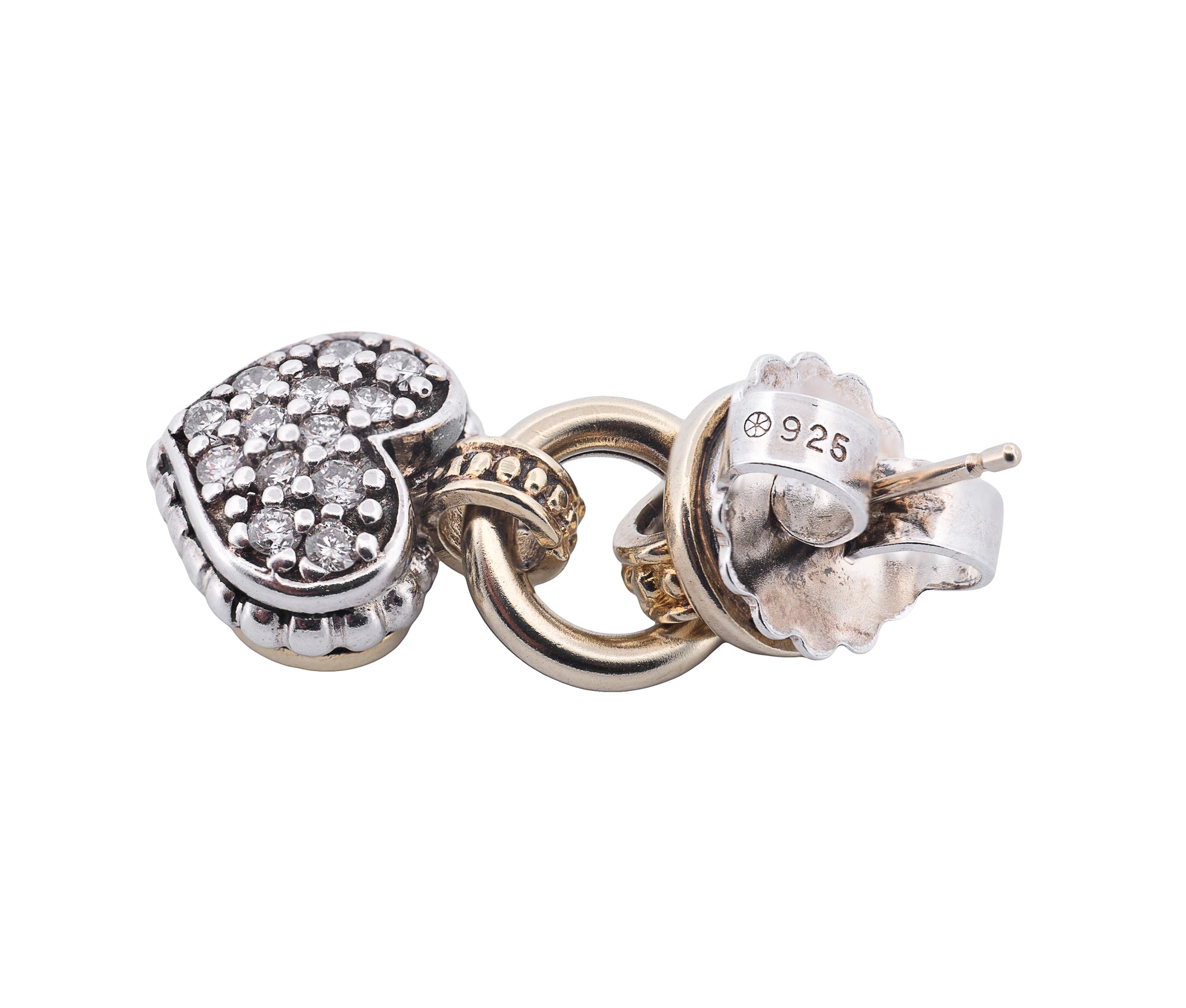 Lagos Sterling Silver and 18K Yellow Gold Dangle Diamond Heart Earrings