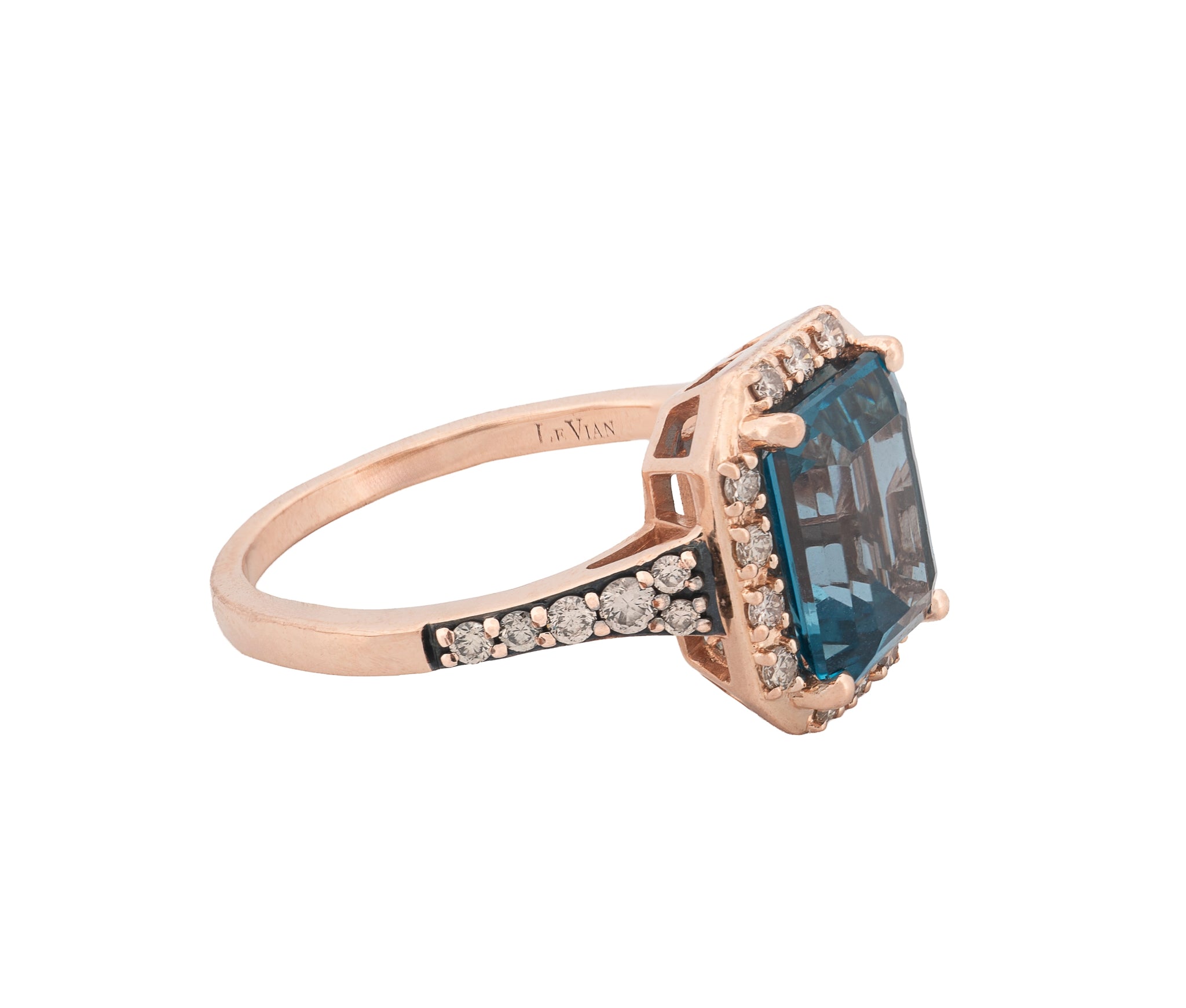 LeVian 14K Strawberry Gold Deep Sea Blue Topaz and Diamond Ring