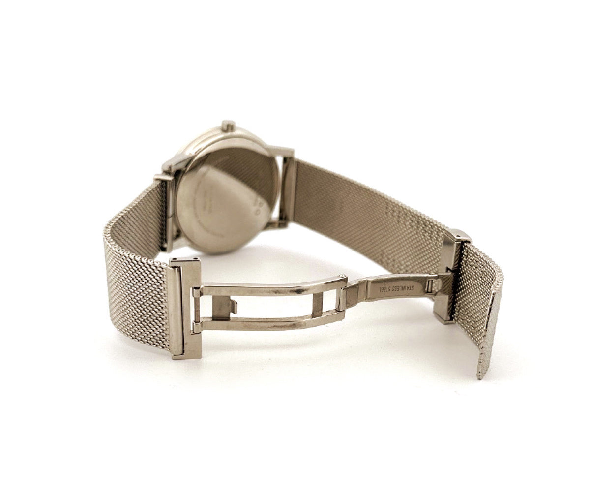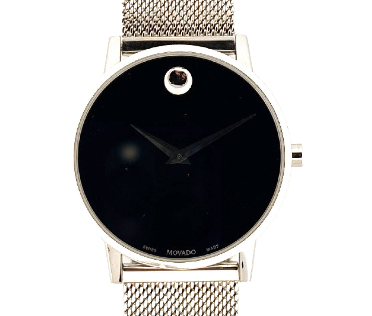 The Movado Museum Classic showcases timeless elegance with its iconic minimalist dial, featuring the signature sun-inspired dot at 12 o'clock. Its sleek stainless steel case pairs beautifully with a refined mesh bracelet, offering modern sophistication, comfort, and precision—perfect for those who value understated luxury and contemporary style.