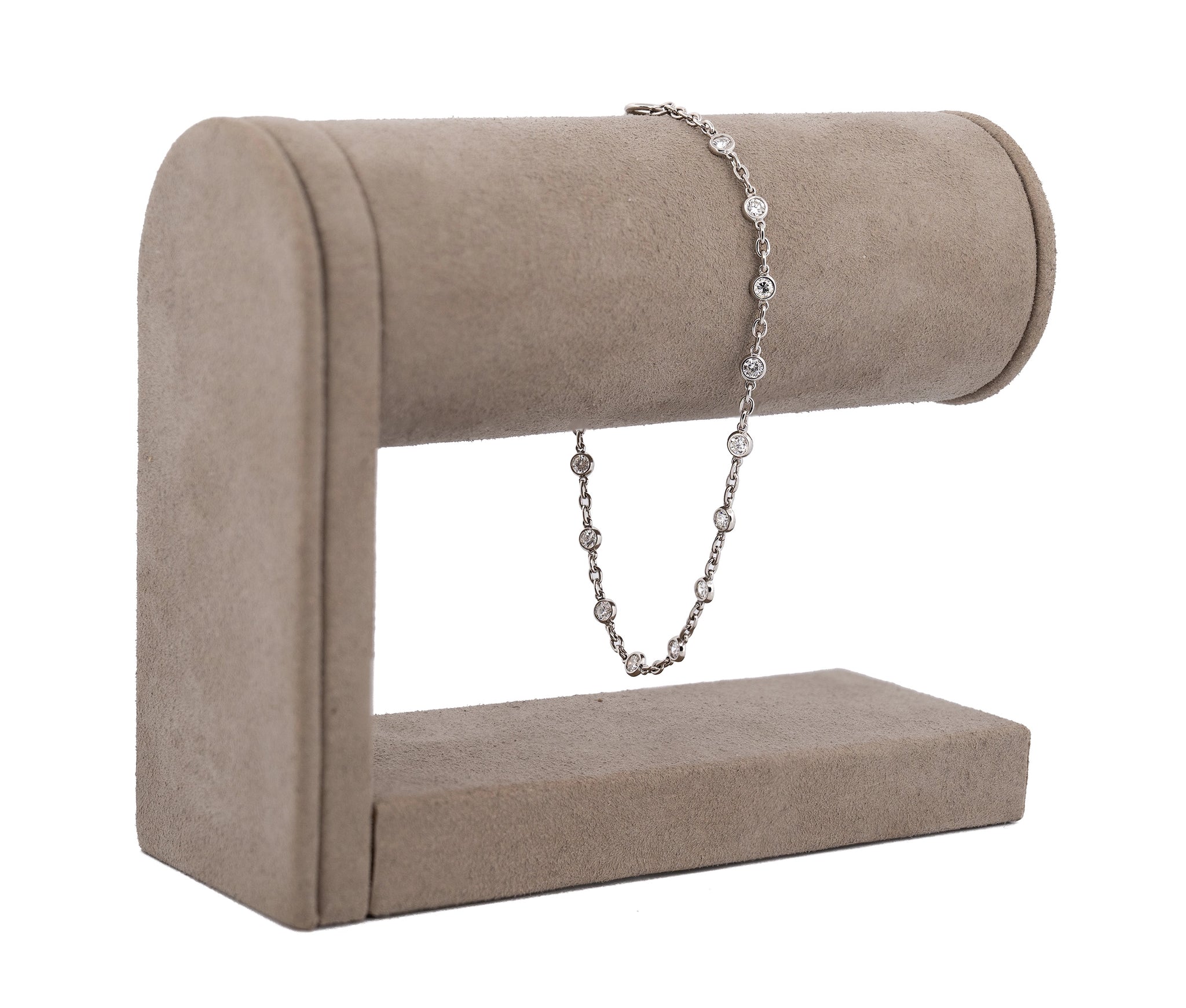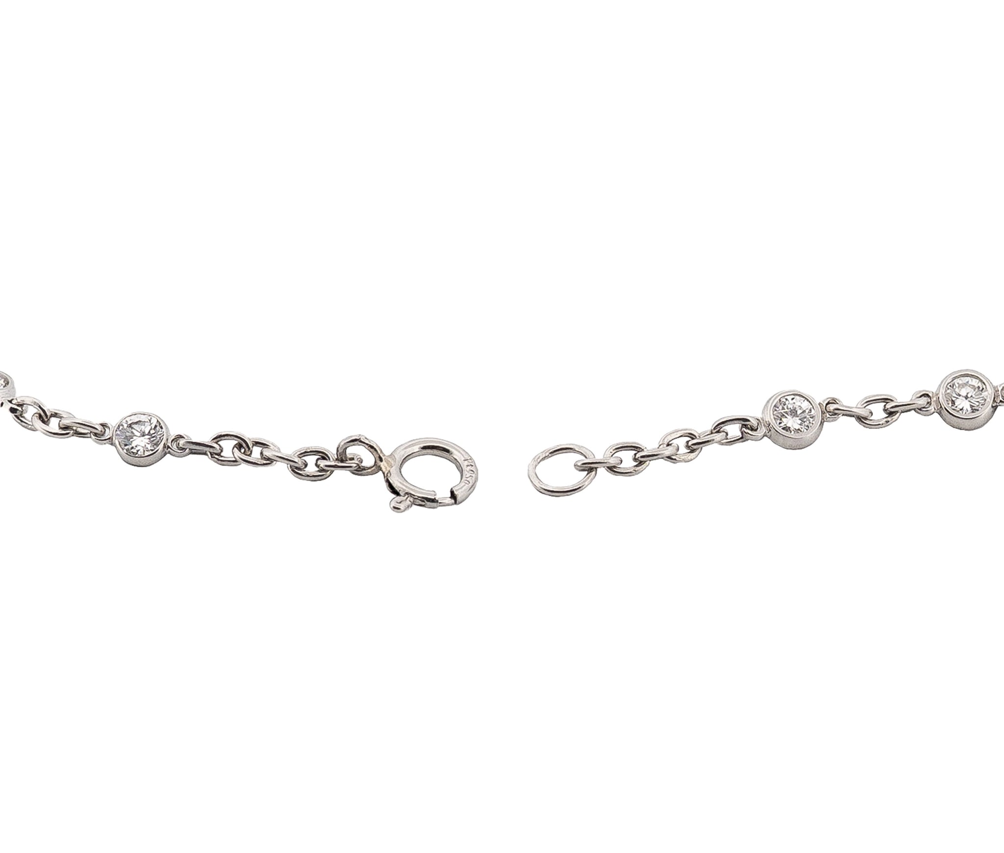 This refined 7-inch Platinum Diamonds by the Yard bracelet showcases 1.00 carat of round brilliant-cut diamonds, elegantly bezel-set and evenly spaced across the length. Featuring 10 sparkling stones, it offers a classic, minimalist look with timeless appeal. Perfect for everyday wear or layering, this piece combines understated elegance with the enduring beauty of platinum.