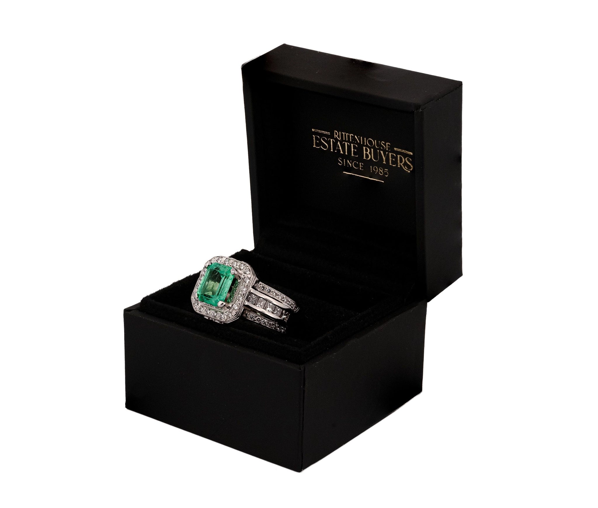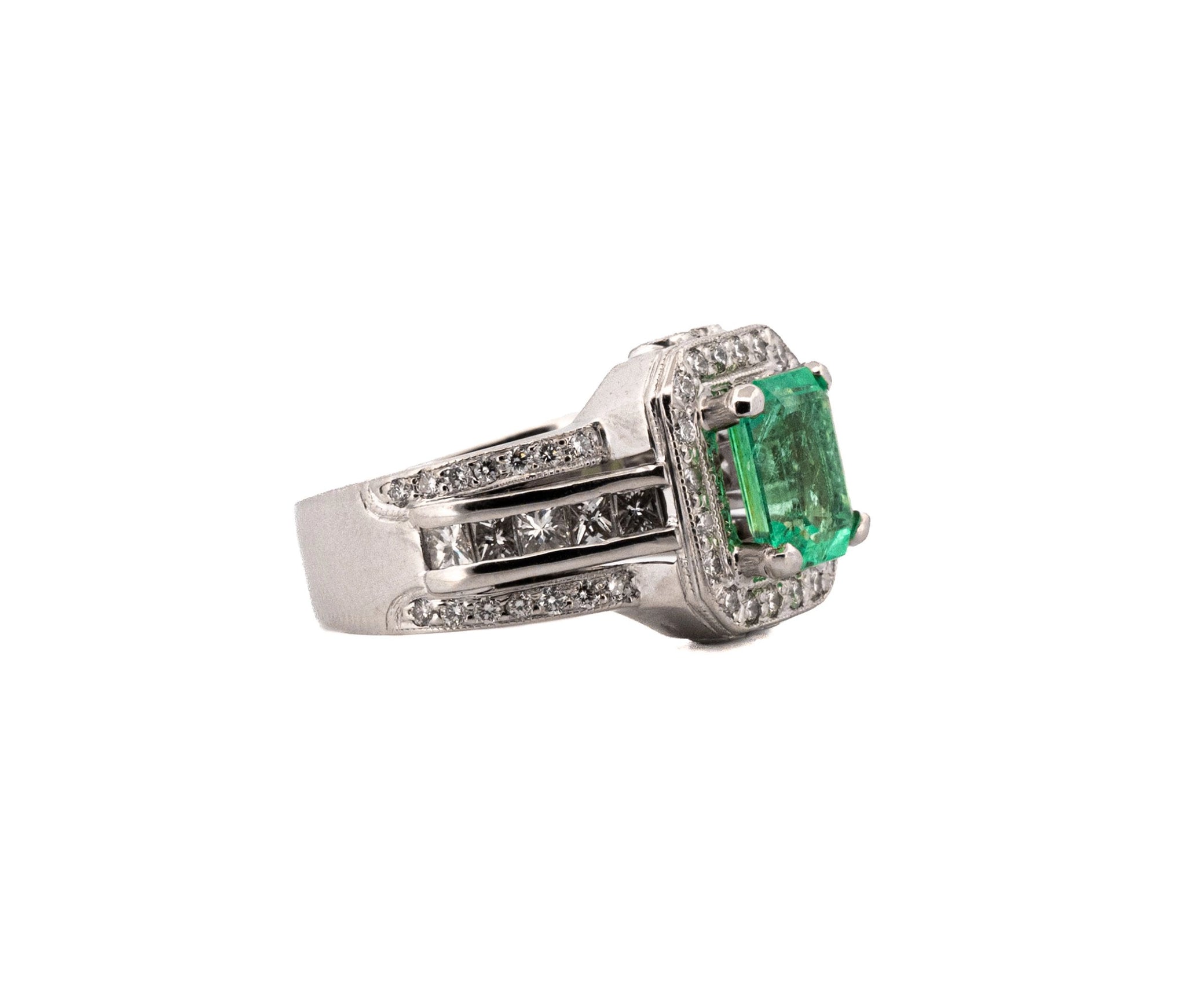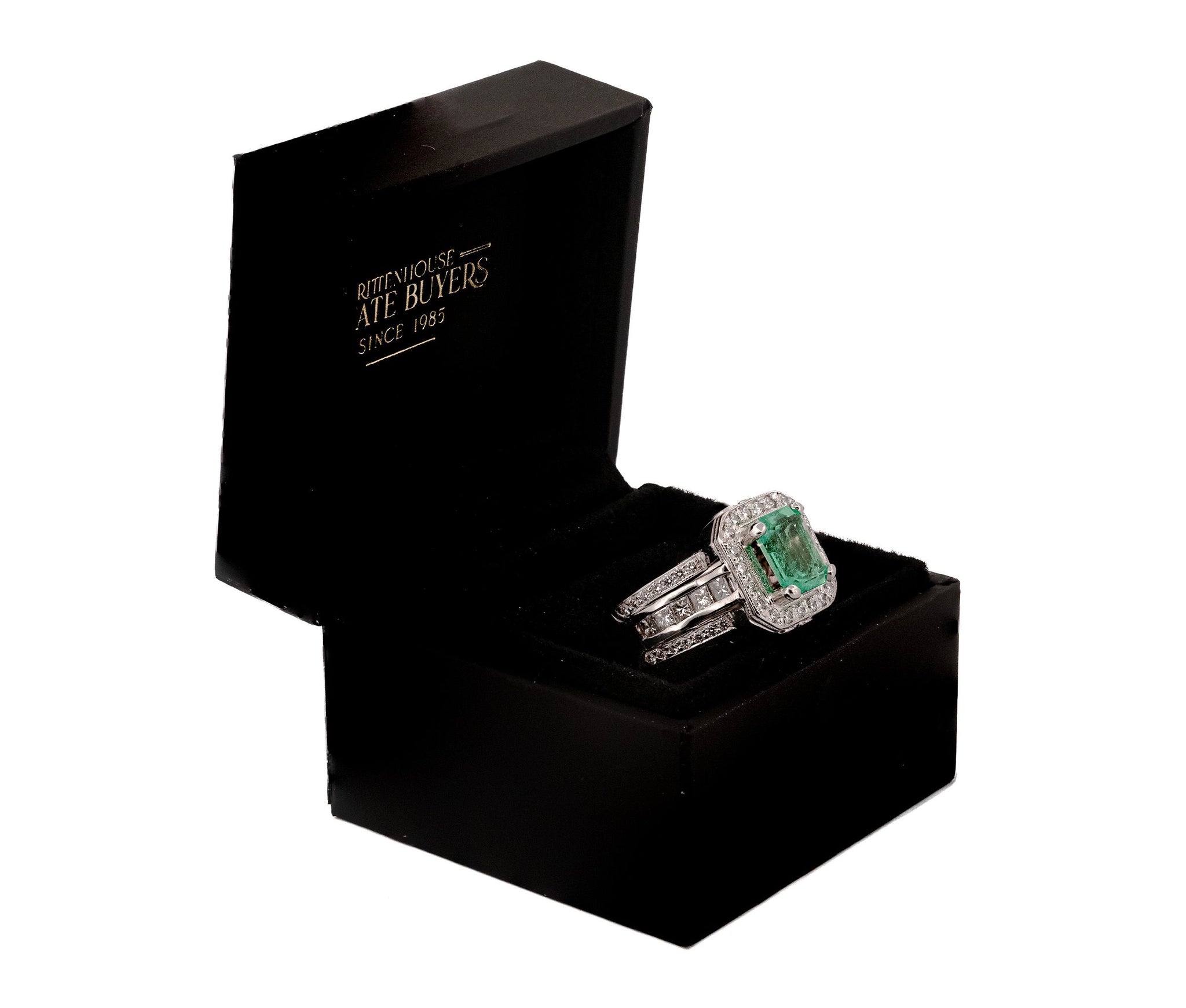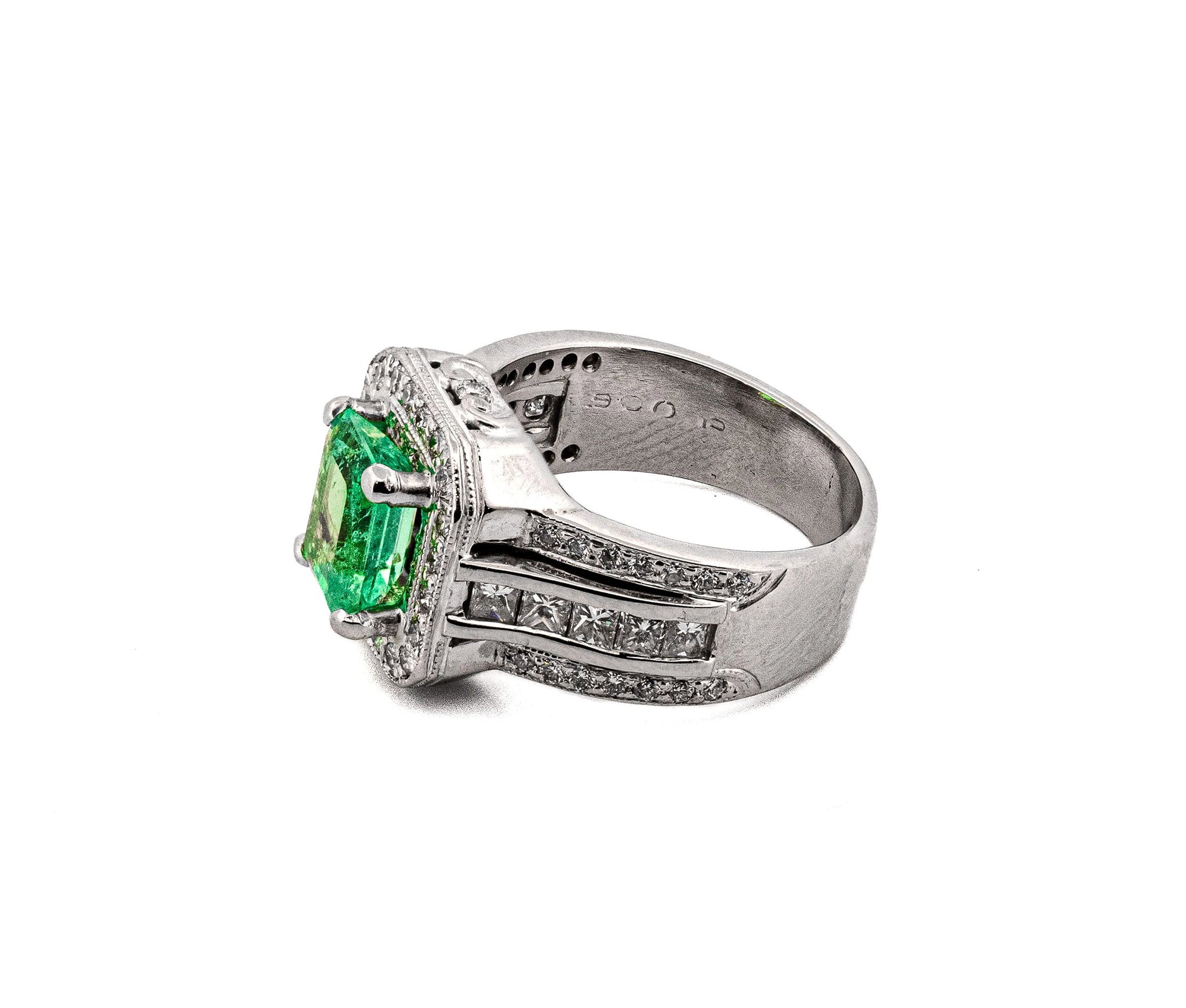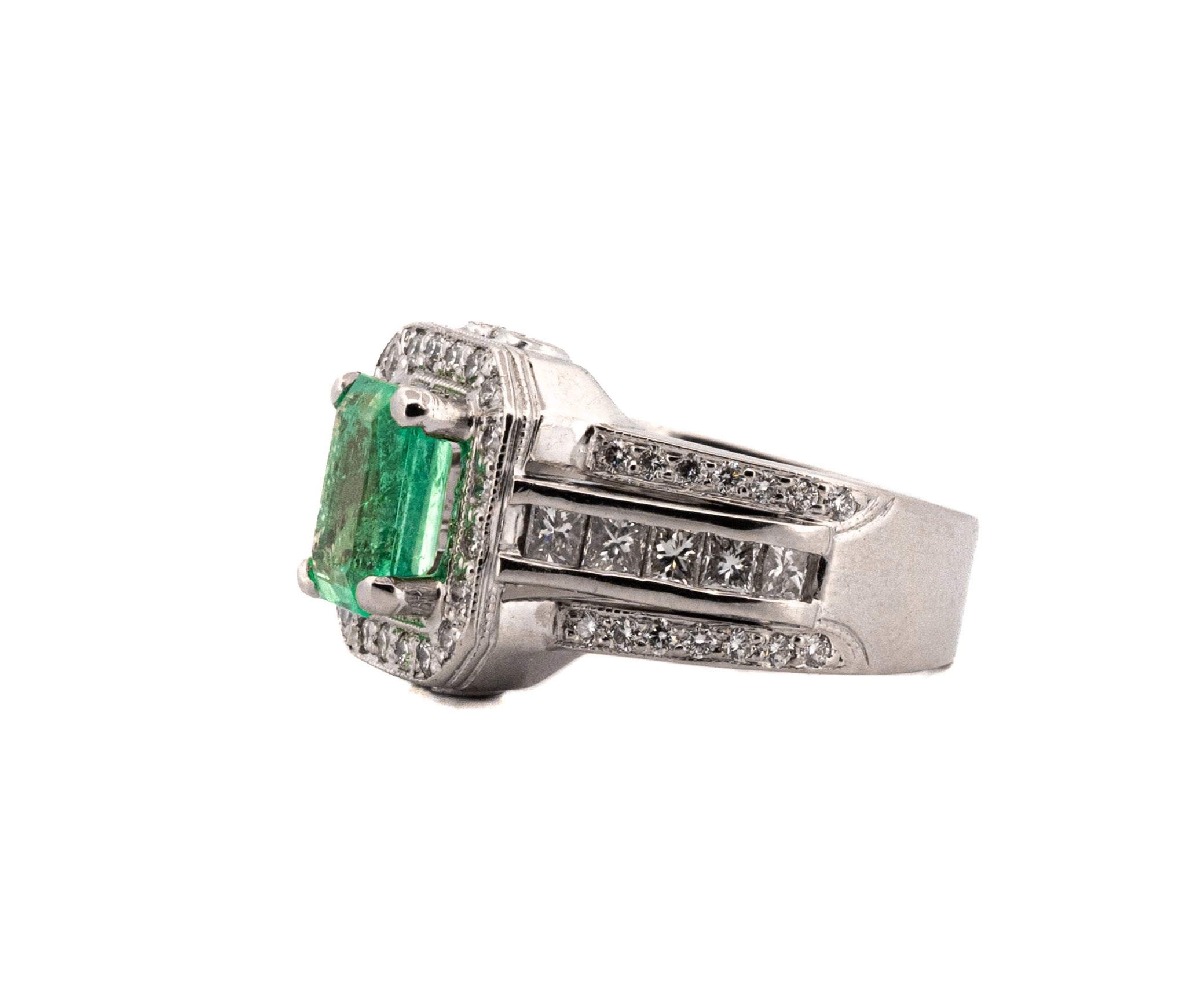 Platinum 2.06ct Emerald and 1.18ct Diamond Halo Ring