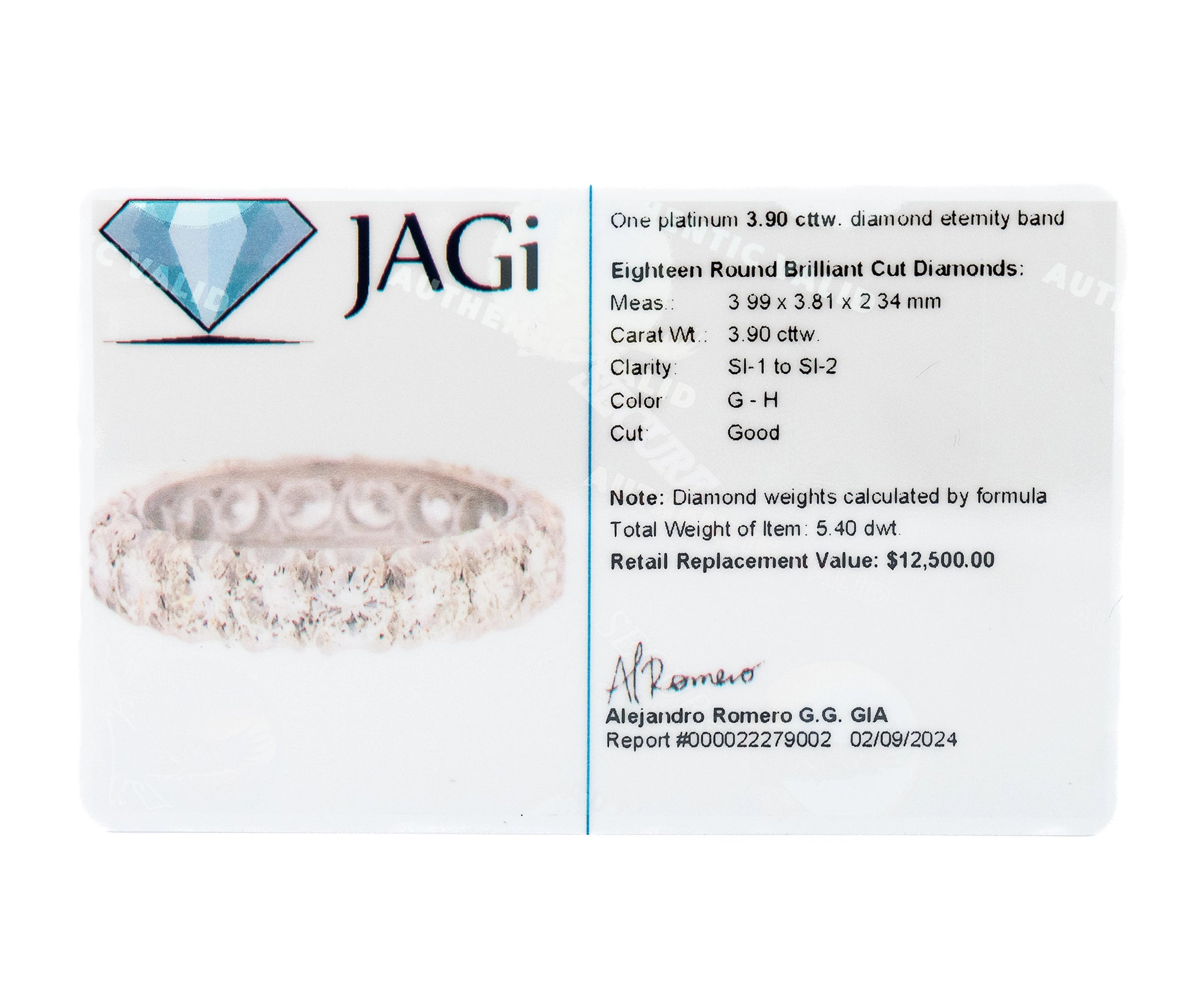 This Platinum Eternity Band features 3.9 carats of dazzling diamonds, arranged in a continuous circle of brilliance. The platinum setting adds a luxurious touch, enhancing the sparkle and durability of each stone. Designed in a size 8, this band is a timeless symbol of everlasting love and elegance.