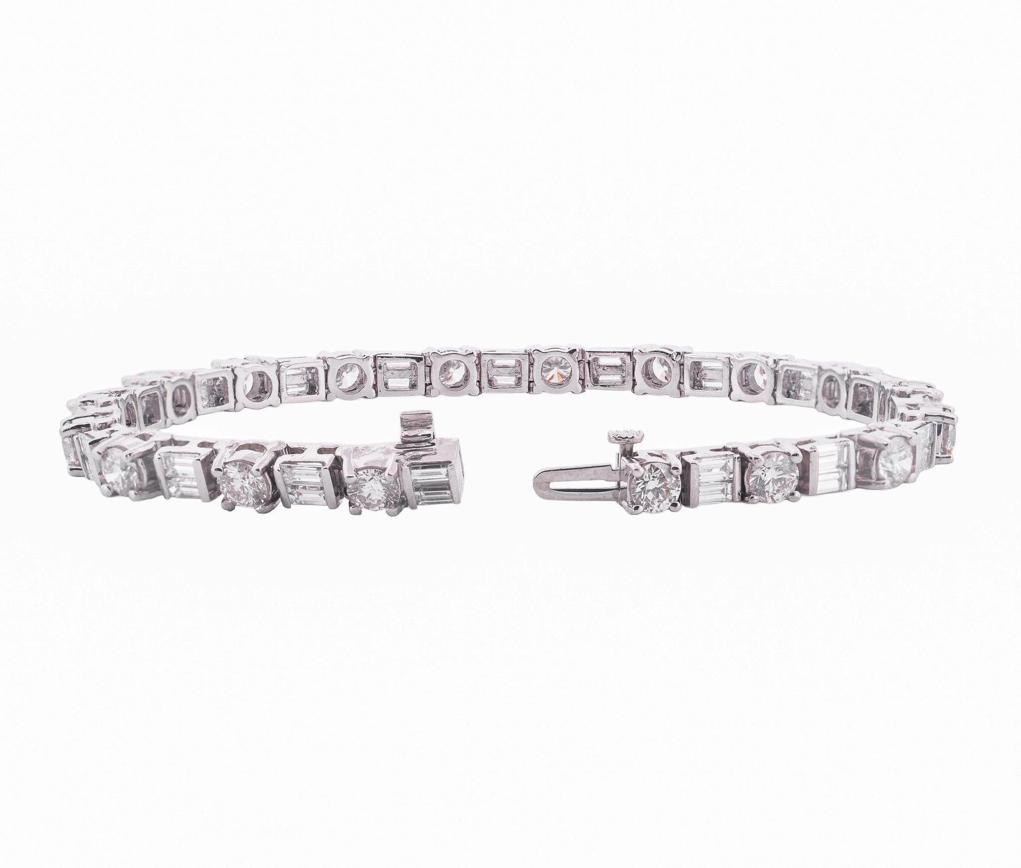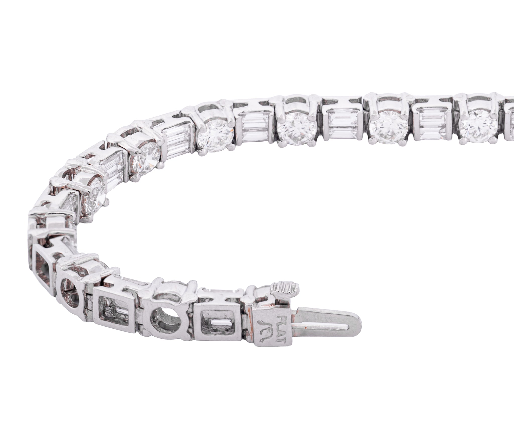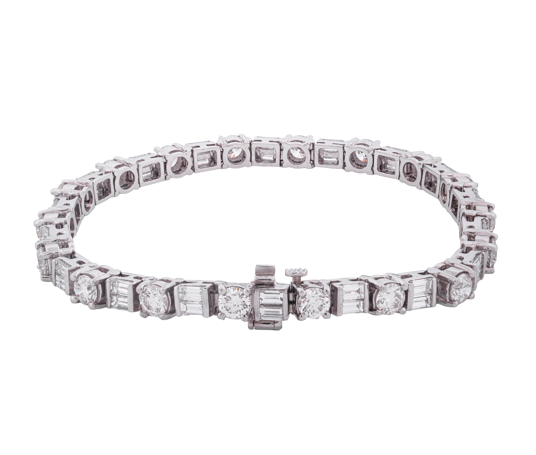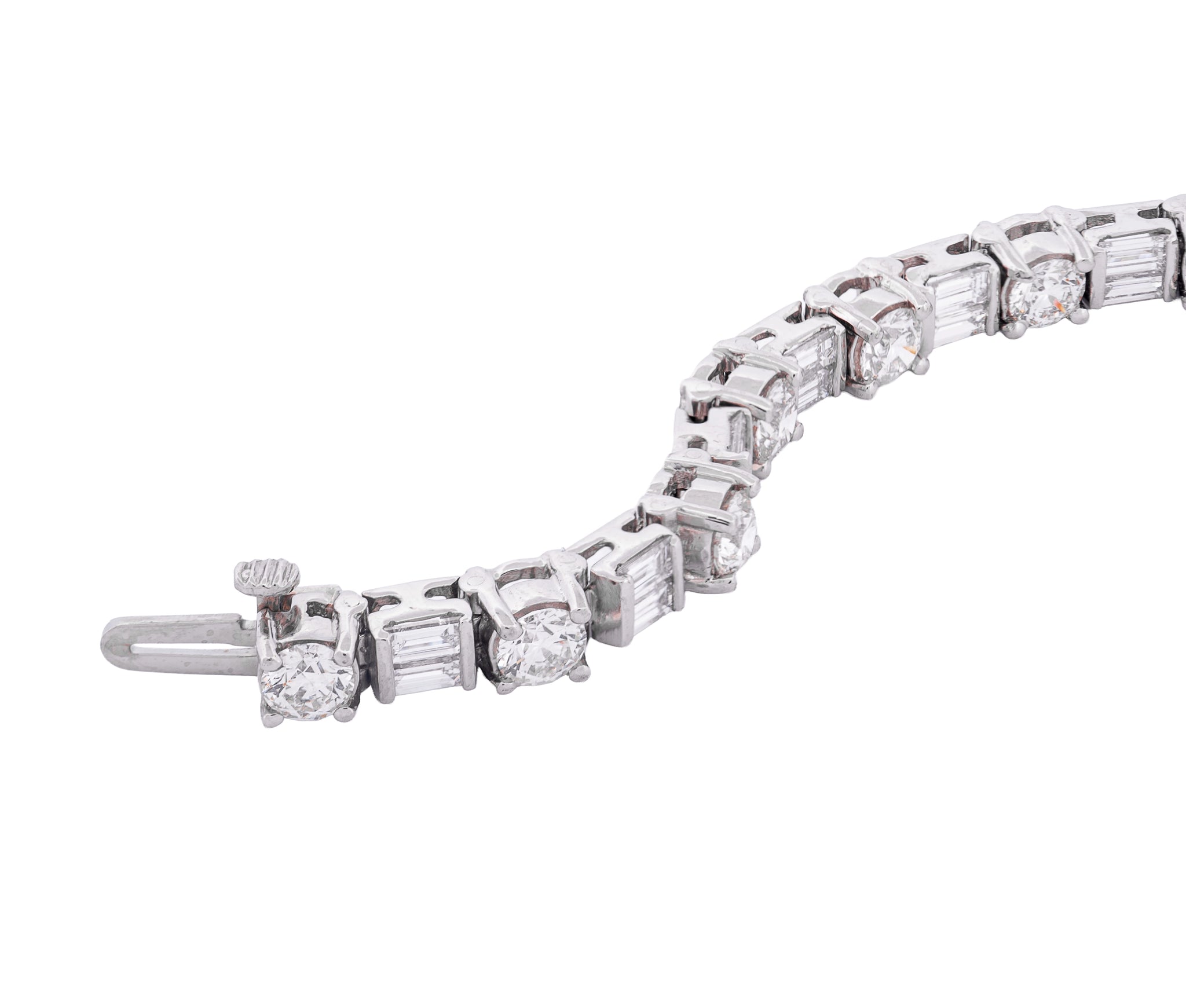 Platinum 6.00ct Round and Baguette Cut Diamond Bracelet