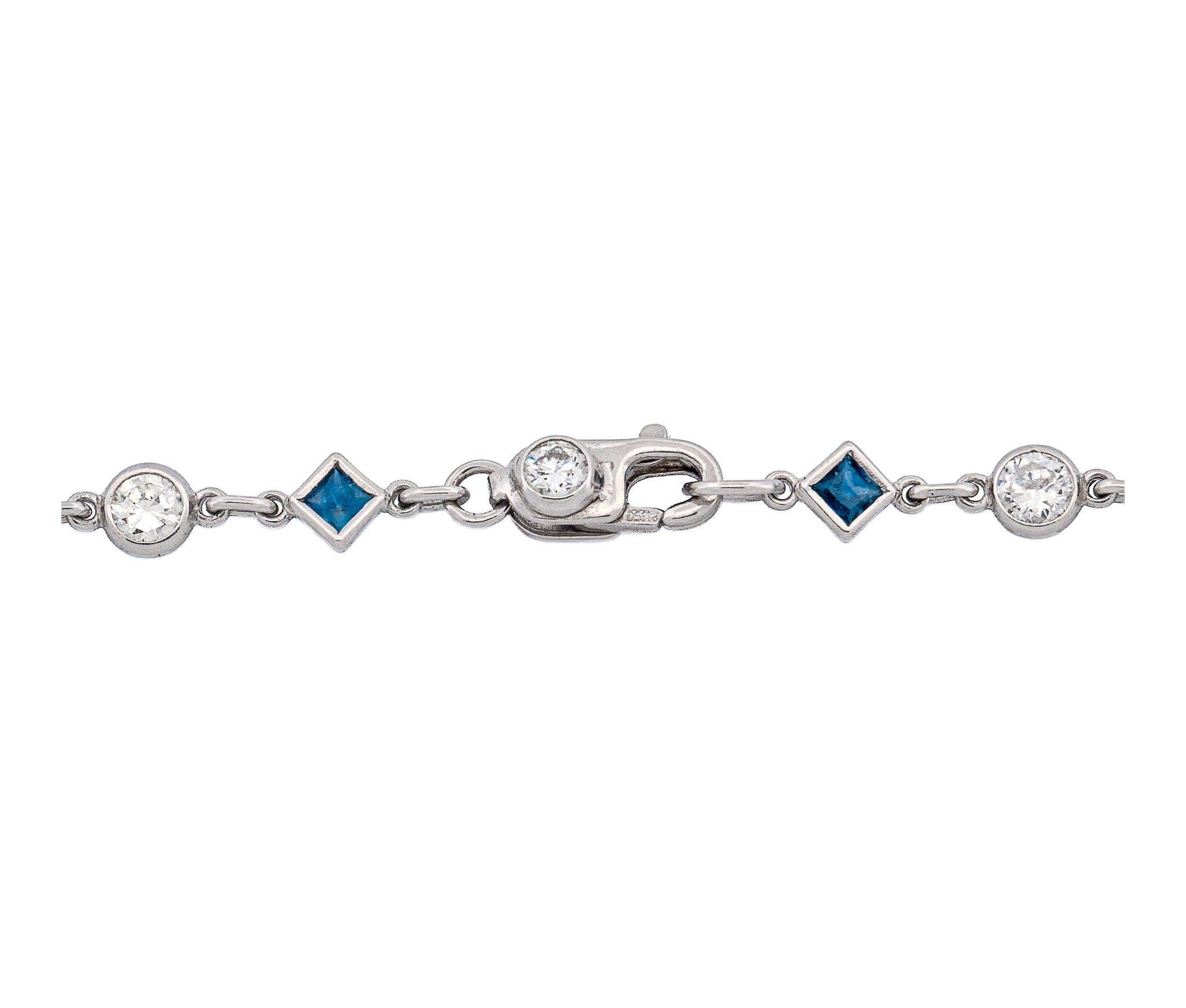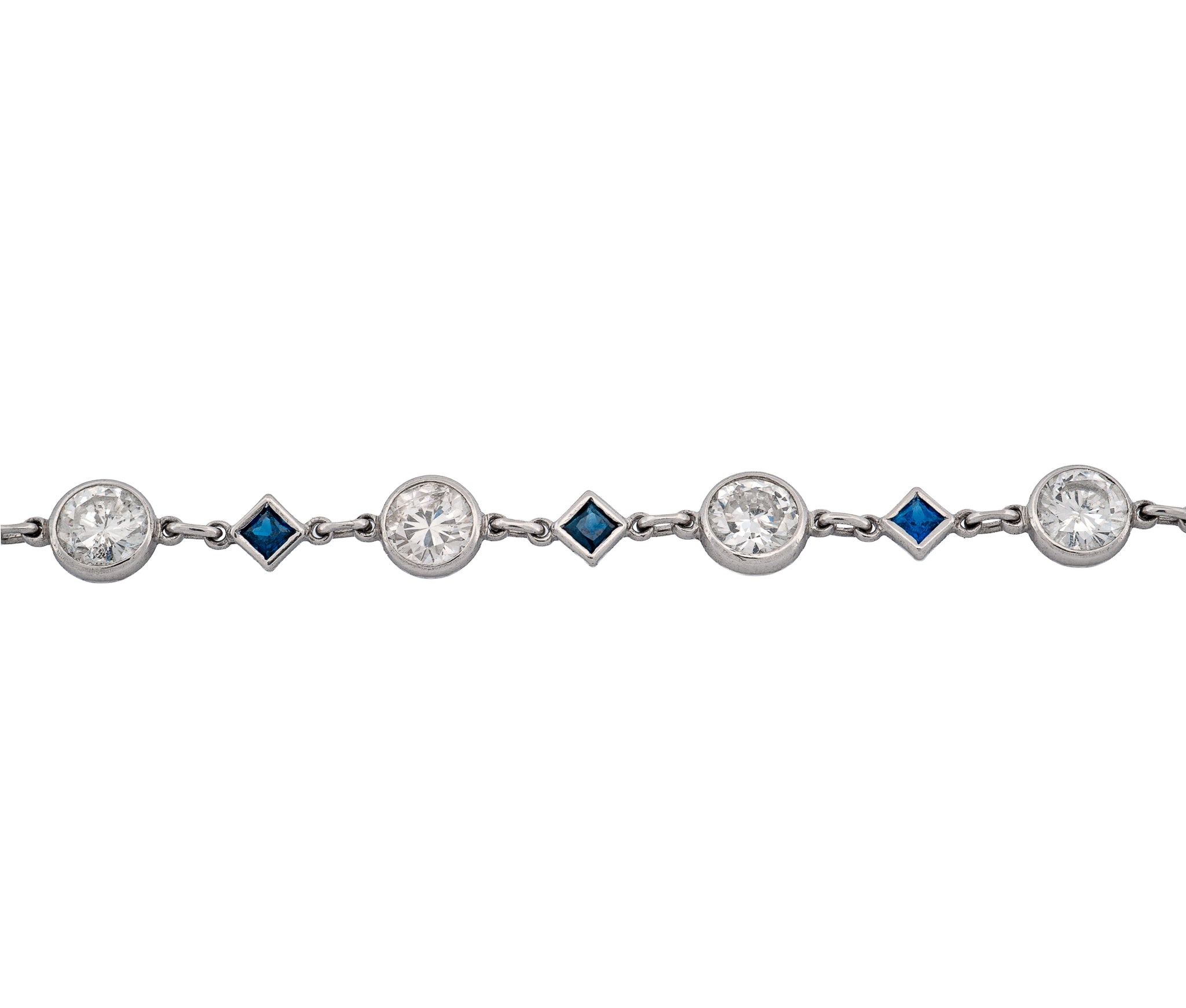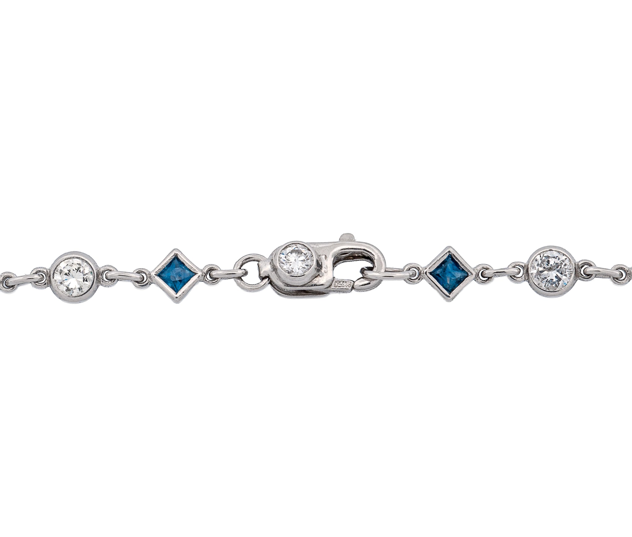 Platinum Diamonds By The Yard Necklace ( 8.76Ct Round Diamond & Square Sapphire)