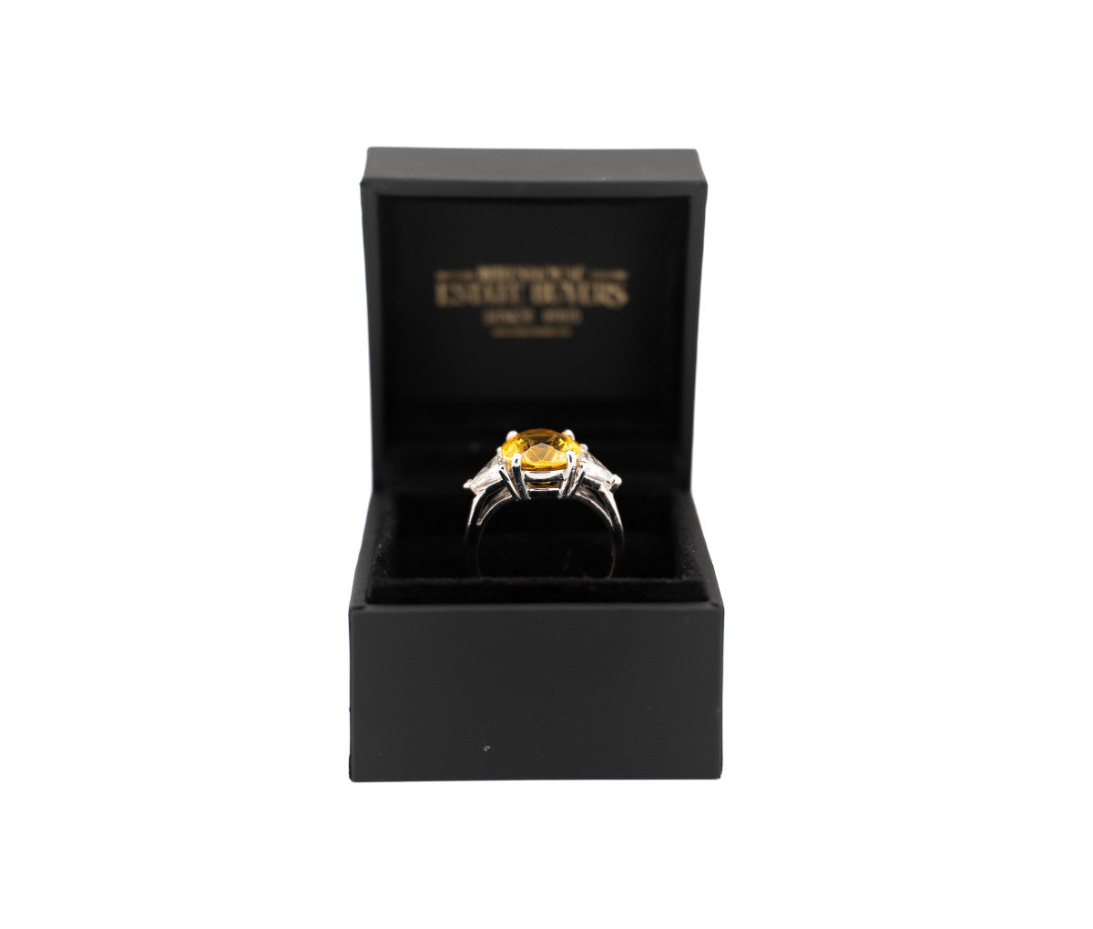 Platnium Ring With Yellow Sapphire and Diamonds 7.0 DWT