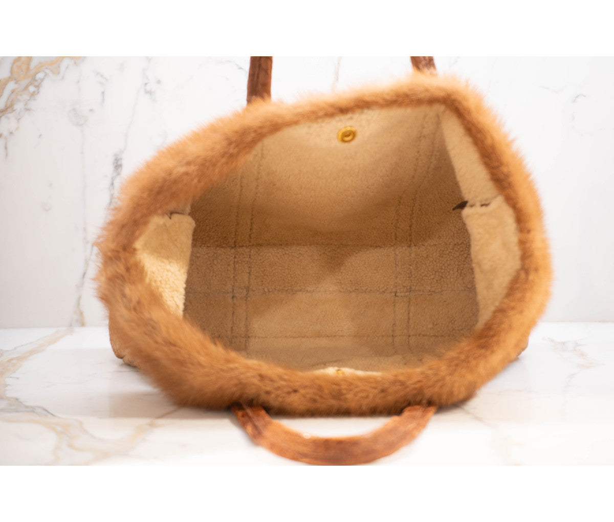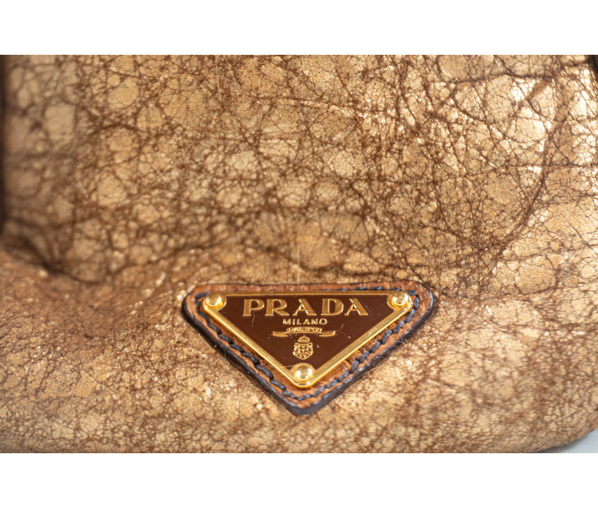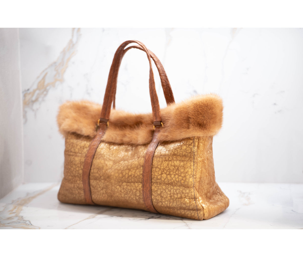 Prada Brown Triangle Coccodrillo & Montone Trimmed Tote