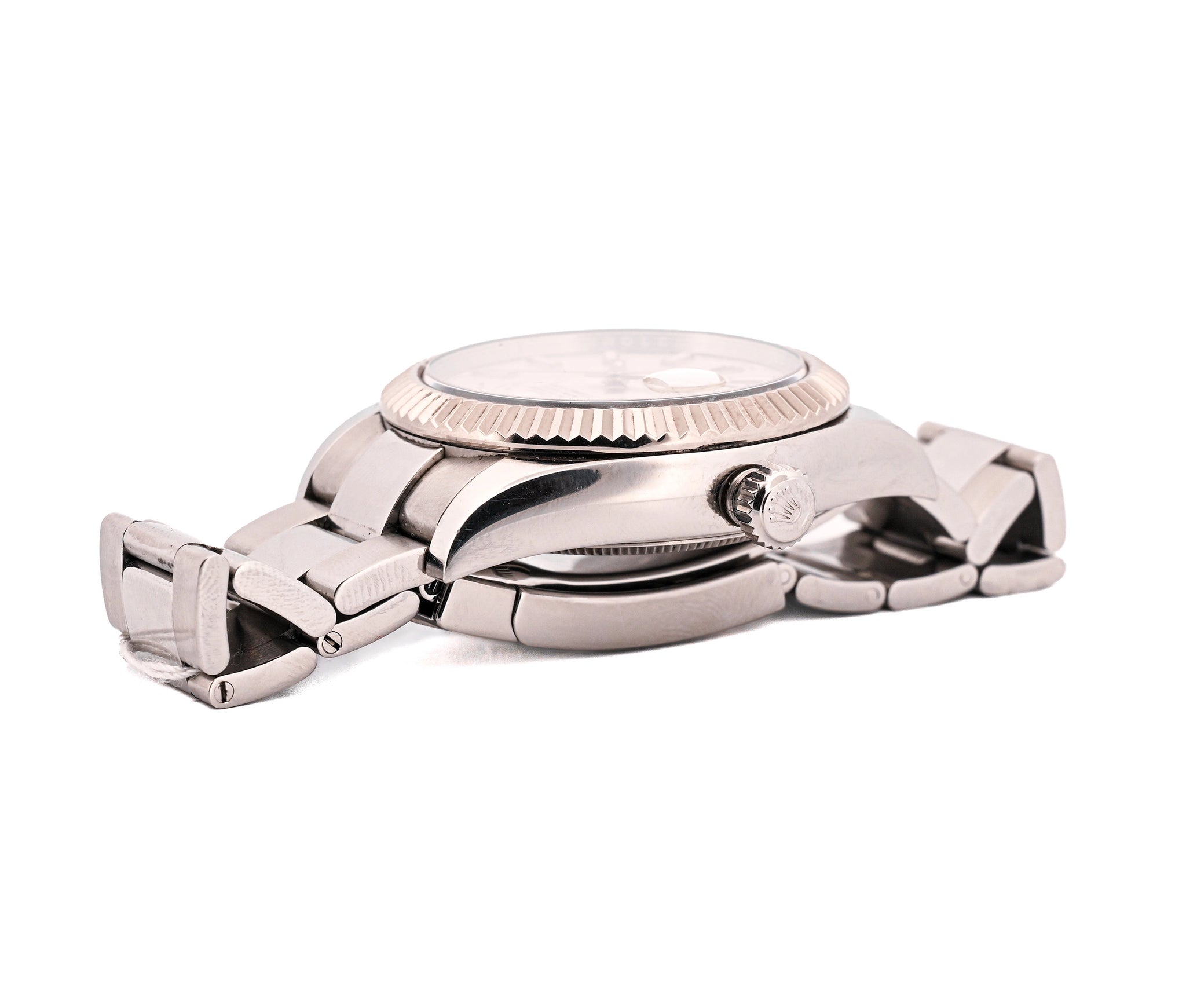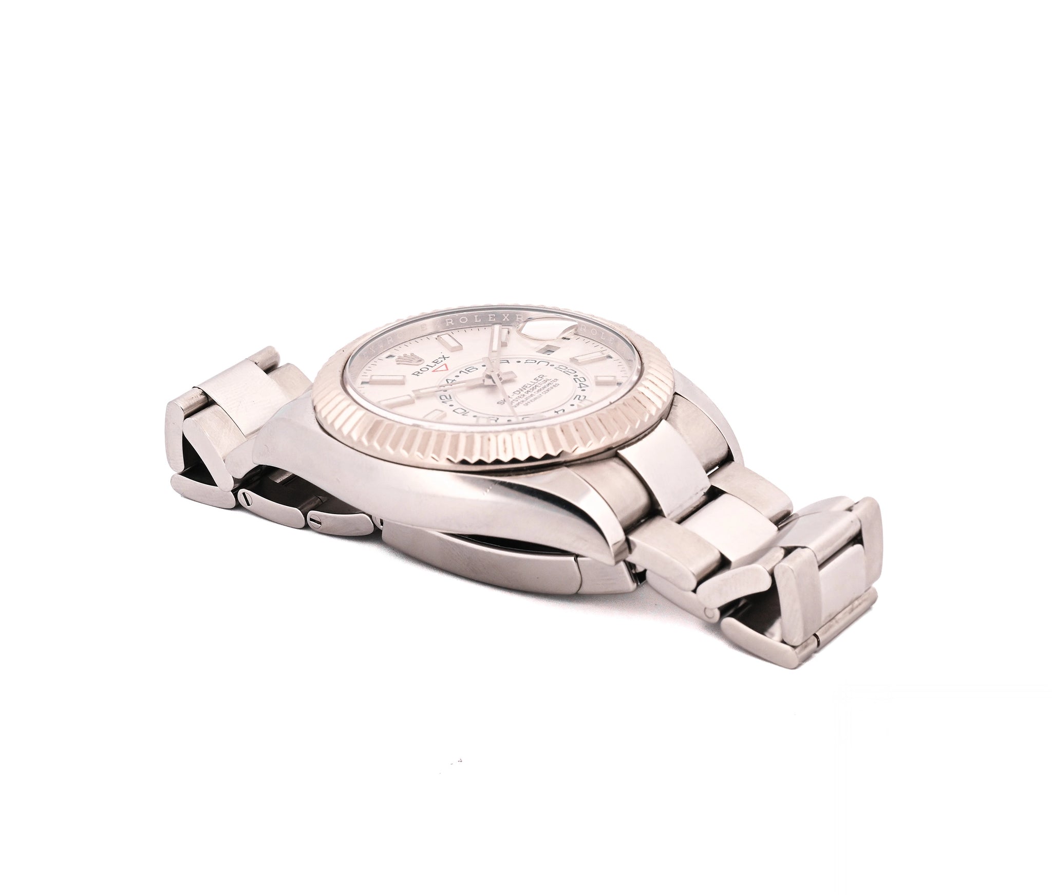 Bold, sophisticated, and built for the world traveler, the Rolex Sky-Dweller 42 mm is a masterpiece of innovation and luxury. Featuring a commanding 42 mm case, this iconic timepiece boasts dual time zone functionality with an off-center 24-hour disc and an annual calendar with the month displayed discreetly around the dial. Crafted from the finest materials and powered by the advanced Rolex Caliber 9001, the Sky-Dweller seamlessly blends technical prowess with timeless design—making it the ultimate companion for those who move with purpose and precision.