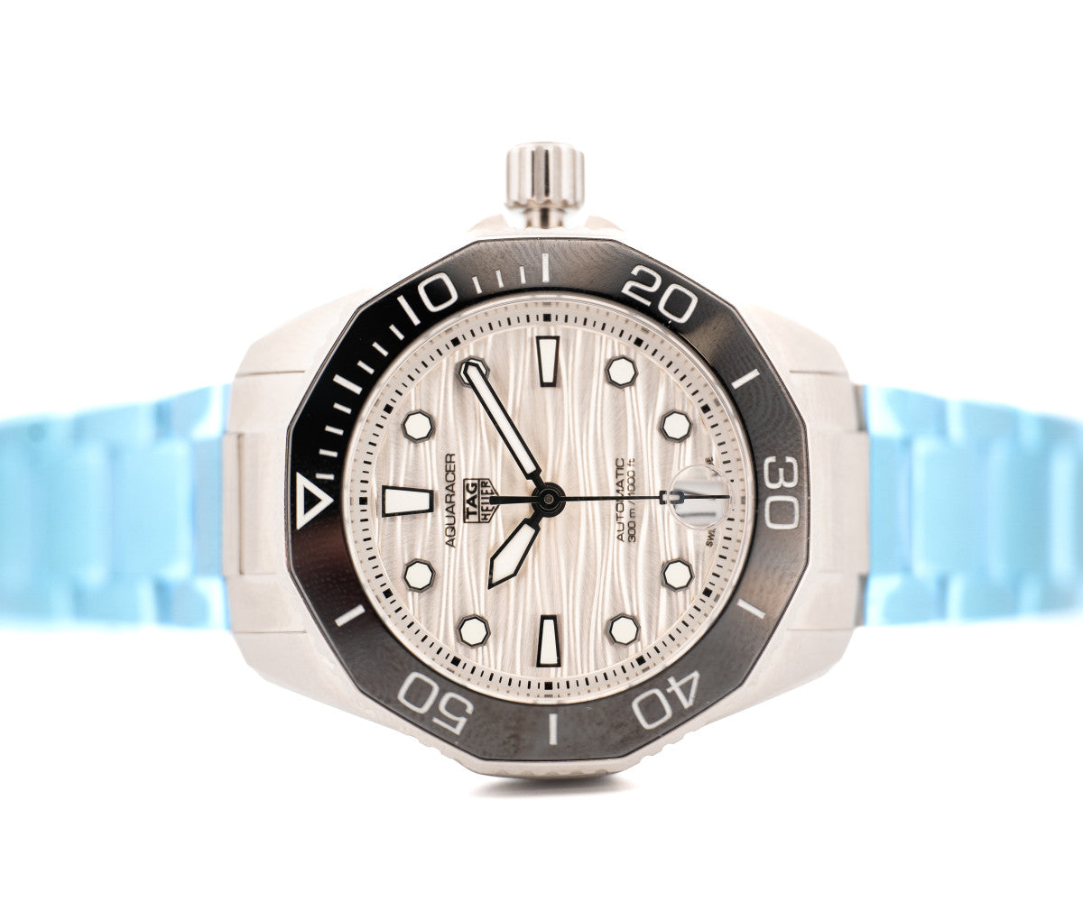 The TAG Heuer Aquaracer Professional 300 Date is a rugged yet refined dive watch, featuring a robust stainless steel case, a unidirectional rotating bezel, and a highly legible dial with a date window. With 300m water resistance, luminous markers, and an automatic movement, it’s a perfect blend of functionality and style for underwater adventures or daily wear.