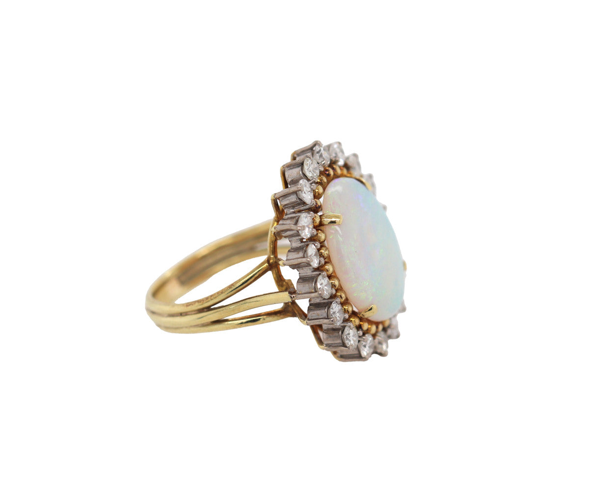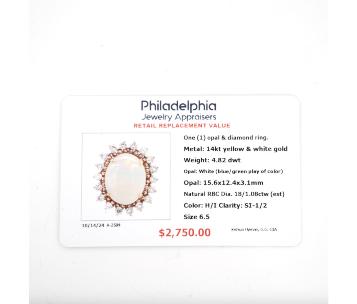 Women's 14k Yellow & White Gold 1.08ct Diamond Opal Ring 1.08dwt