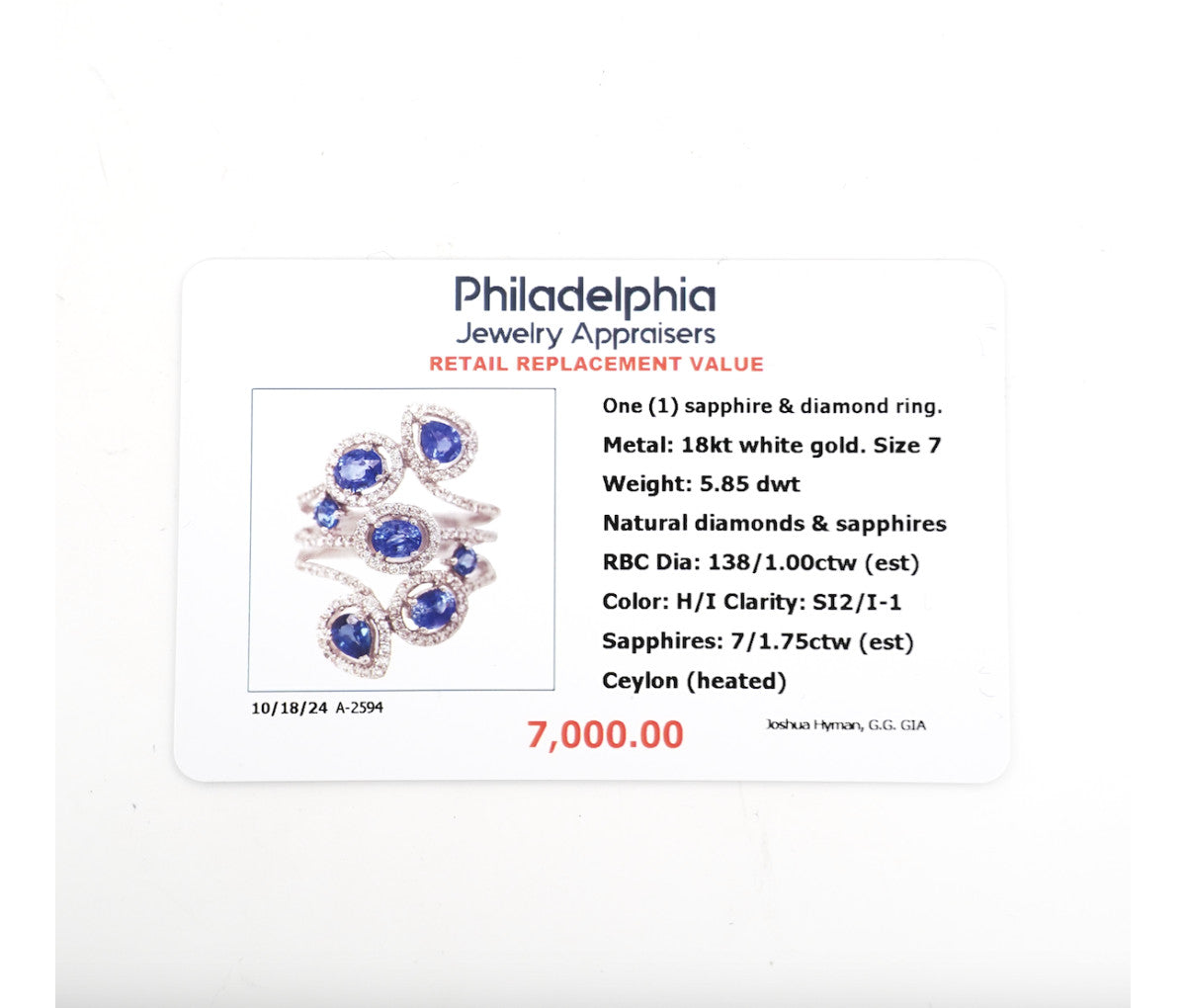 Women's 18K 1.00ct Diamond & Sapphire Ring 5.85dwt