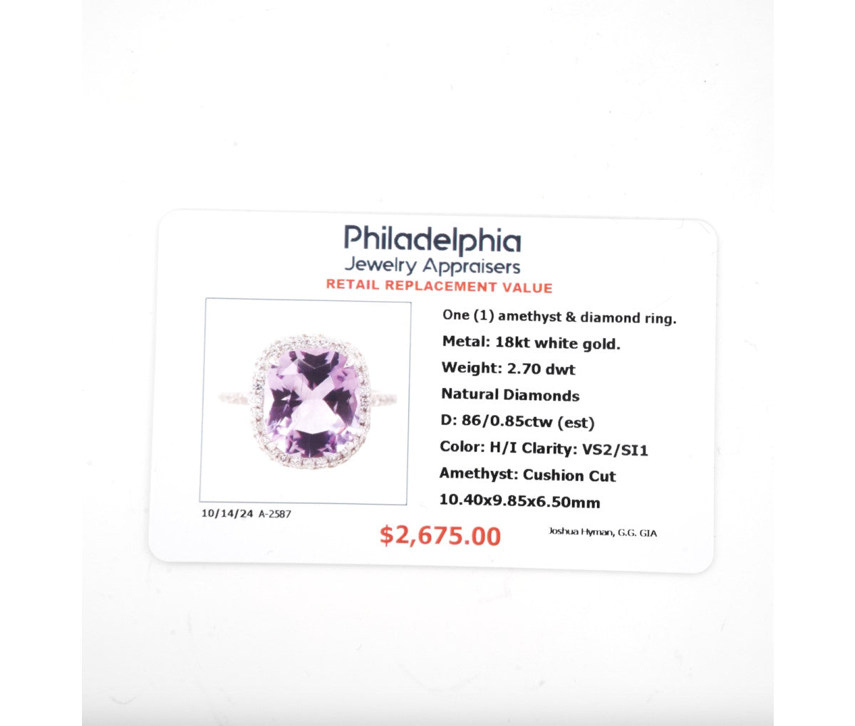 Women's 18k Amethyst & 0.85ct Diamond Ring 2.8dwt