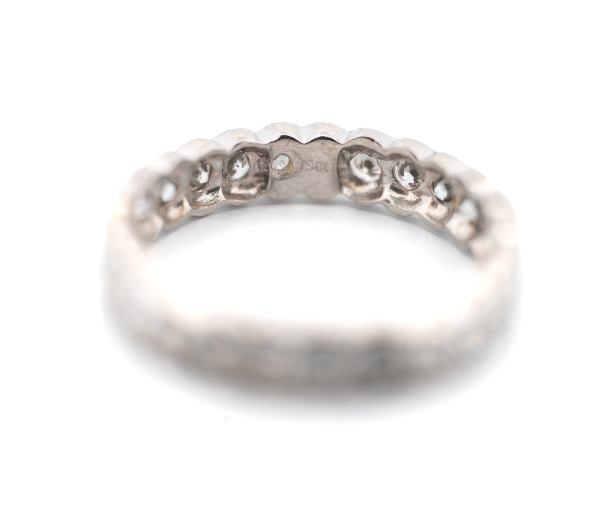 Crafted from high-quality platinum, the band not only offers durability and strength but also has a brilliant luster that enhances the diamonds' shine.